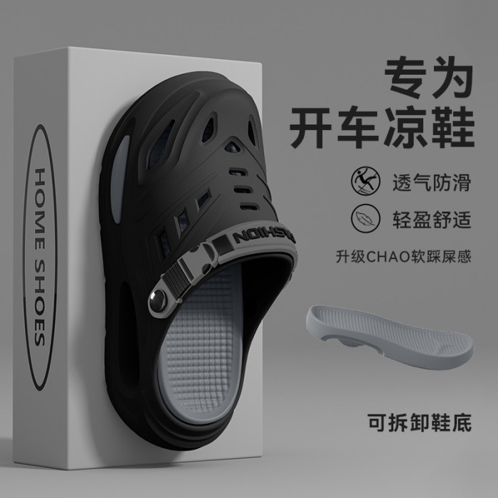 開車洞洞鞋男士夏季外穿2025新款厚底耐磨透氣抗菌不臭腳兩穿涼拖