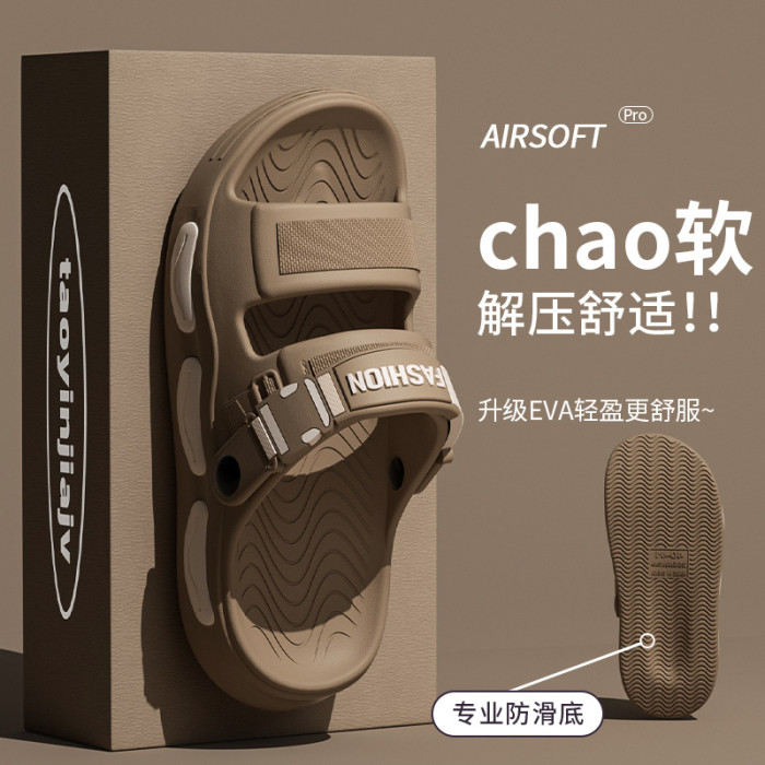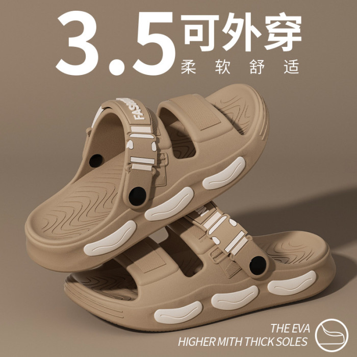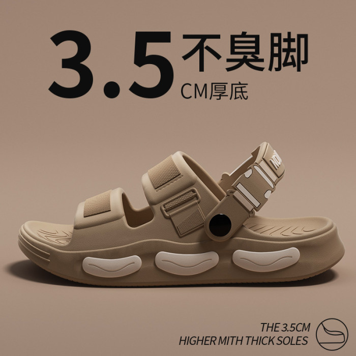 涼拖鞋男士夏季外穿厚底耐磨沙灘涼鞋戶外開車防滑防臭踩屎感拖鞋