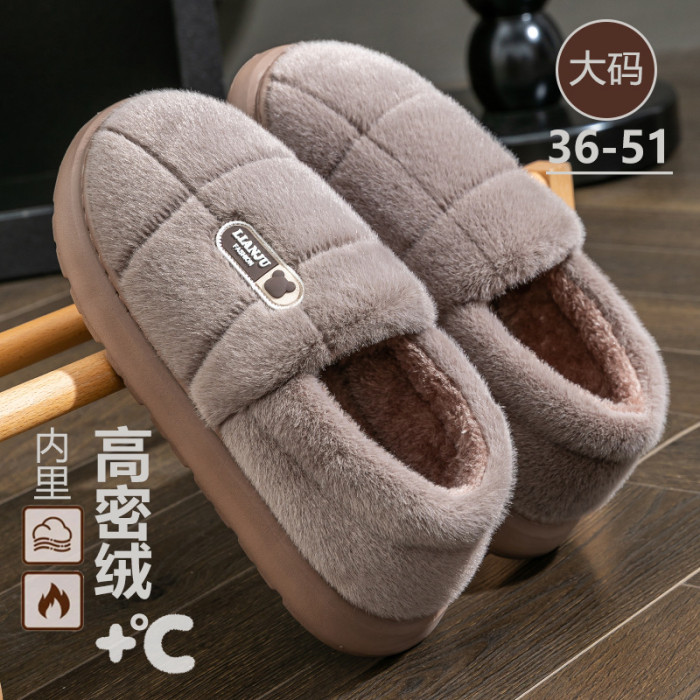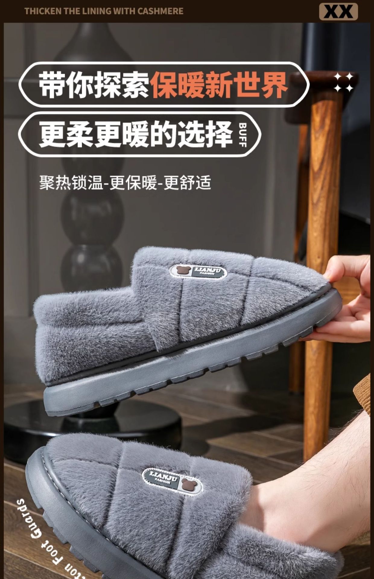 老年人大碼棉拖鞋男士秋冬季保暖居家居室內家用防滑加絨毛拖鞋女