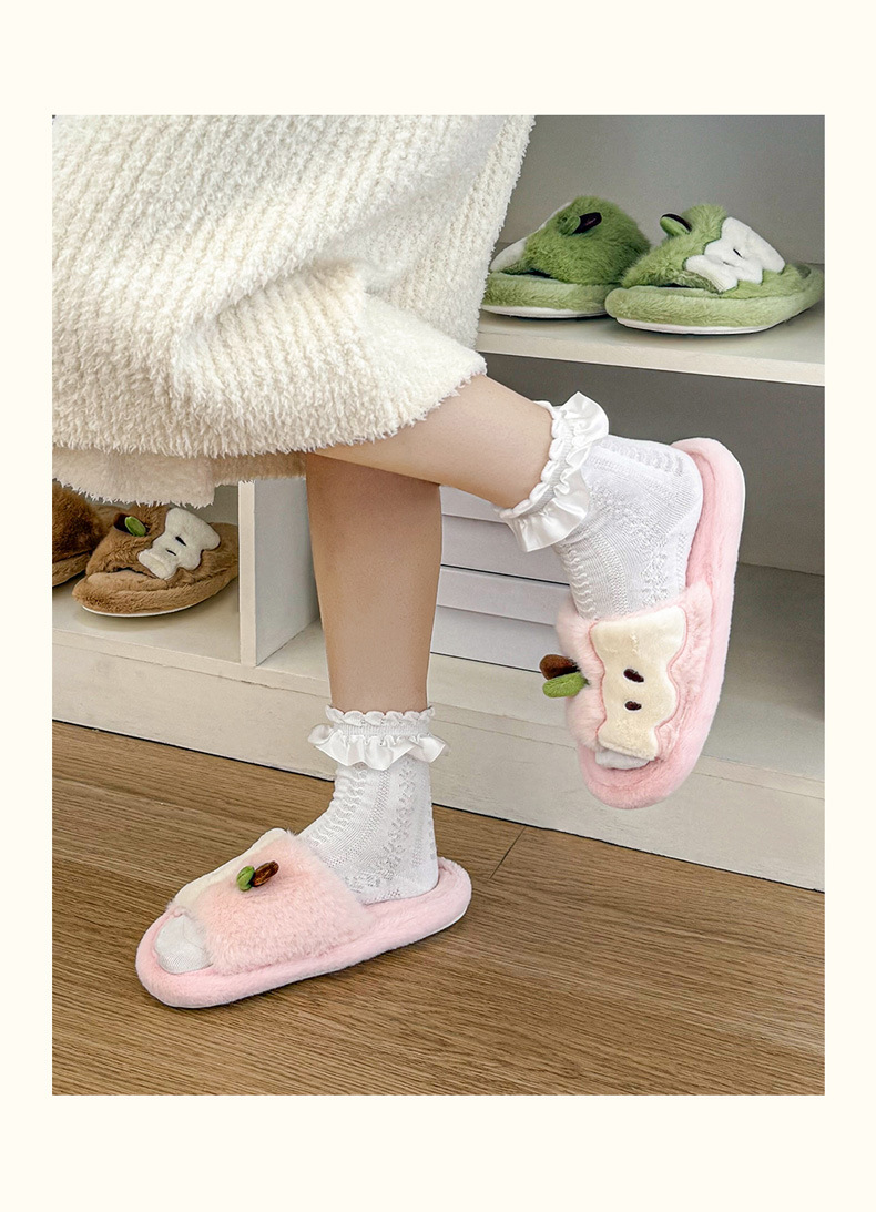 棉拖鞋女居家室內可愛蘋果拖鞋女款學生宿舍毛絨保暖防滑情侶拖鞋