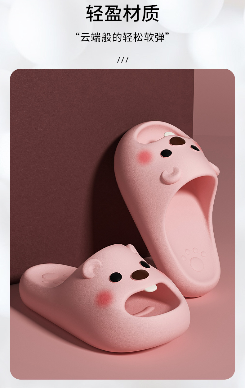 可愛小海狸拖鞋女夏季2025新款居家防滑中大兒童親子外穿涼拖鞋男