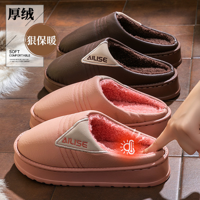 防水棉拖鞋女士秋冬季2025新款室內家居厚底保暖加絨情侶棉拖外穿