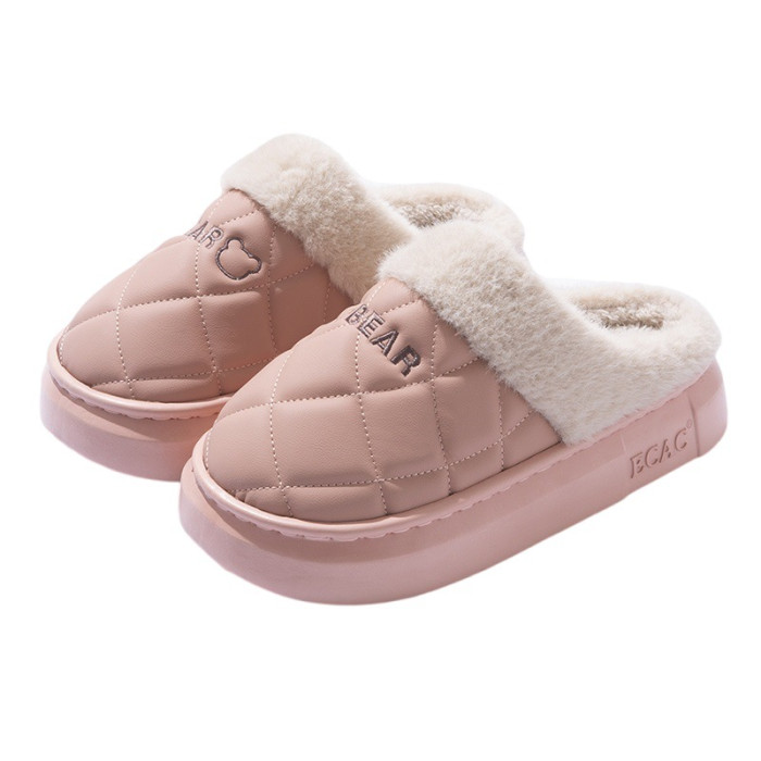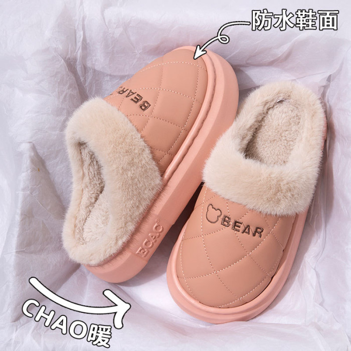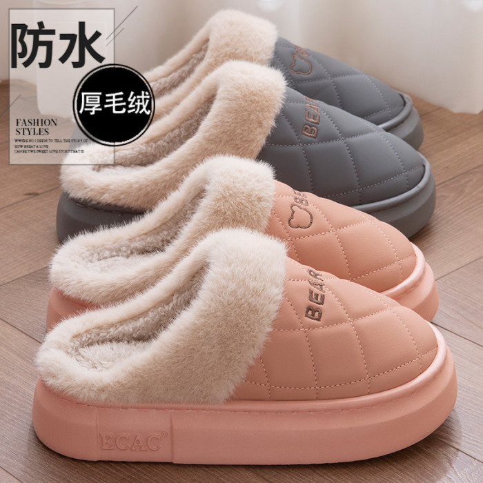 防水棉拖鞋女款秋冬季2025新款家居室內加絨保暖外穿厚底毛絨拖鞋
