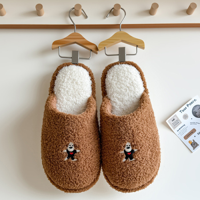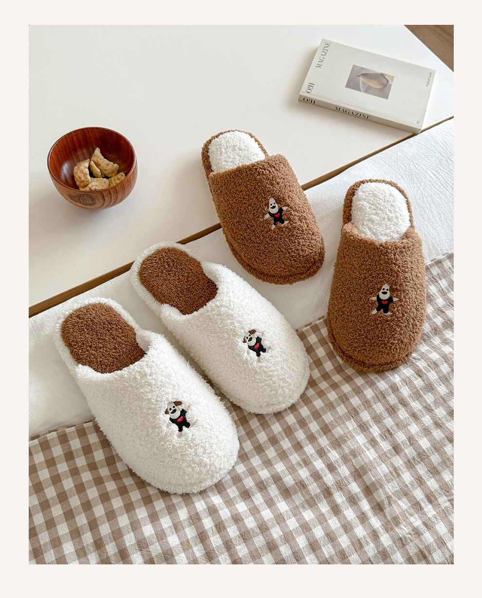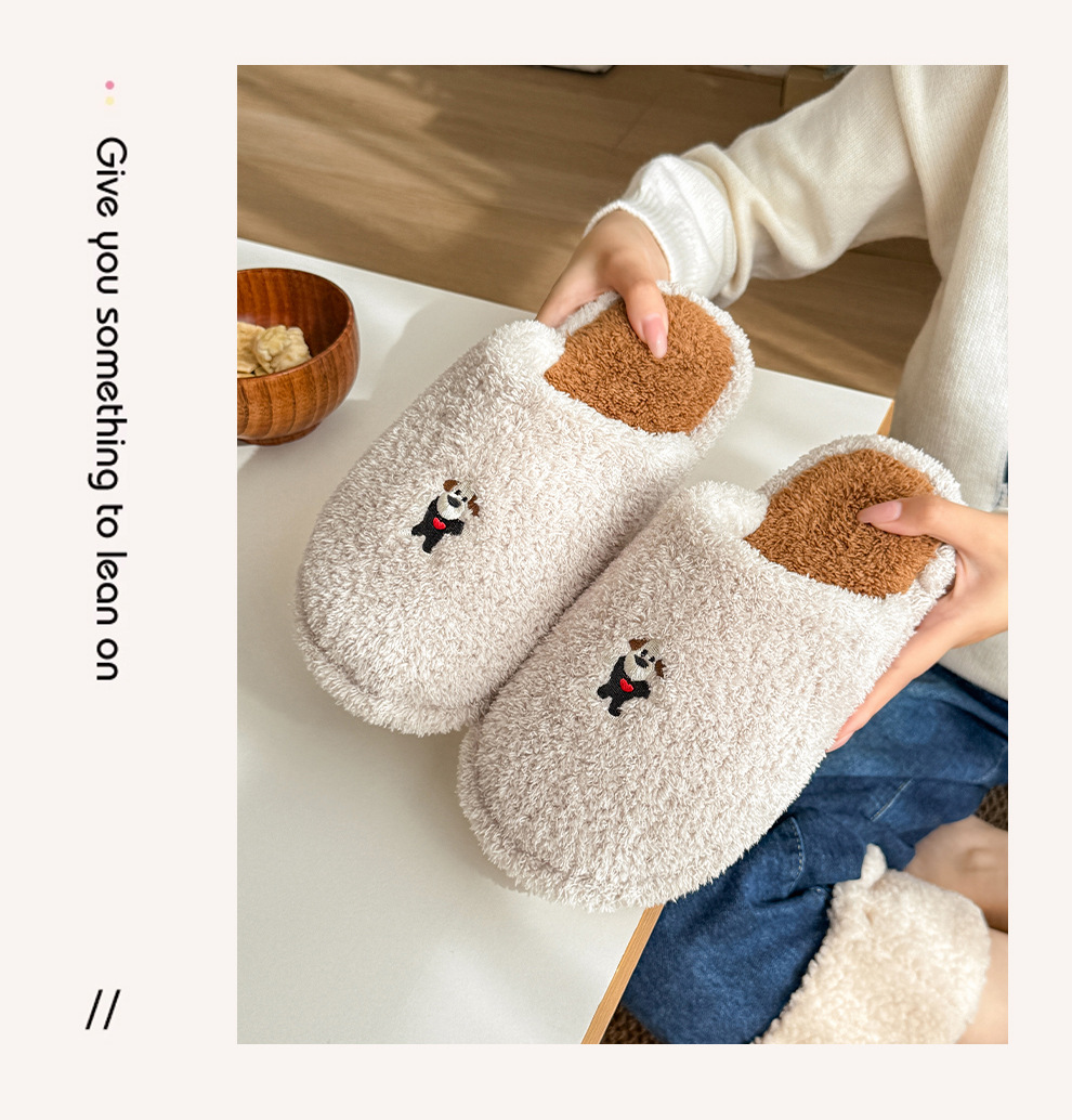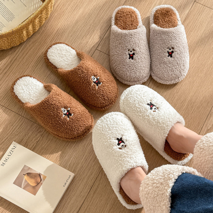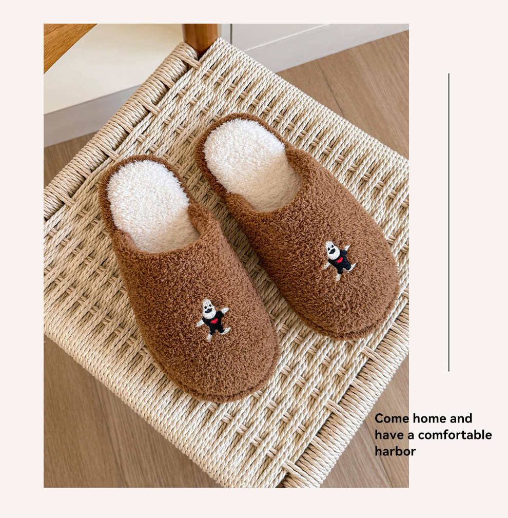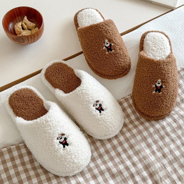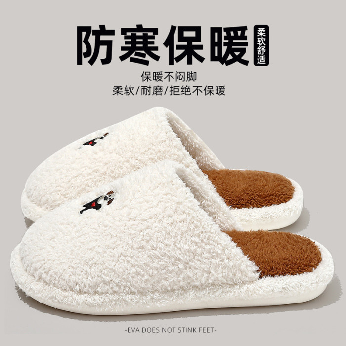 新款舒適居家可愛卡通小狗冬季棉拖鞋男女情侶款保暖室內棉拖鞋女