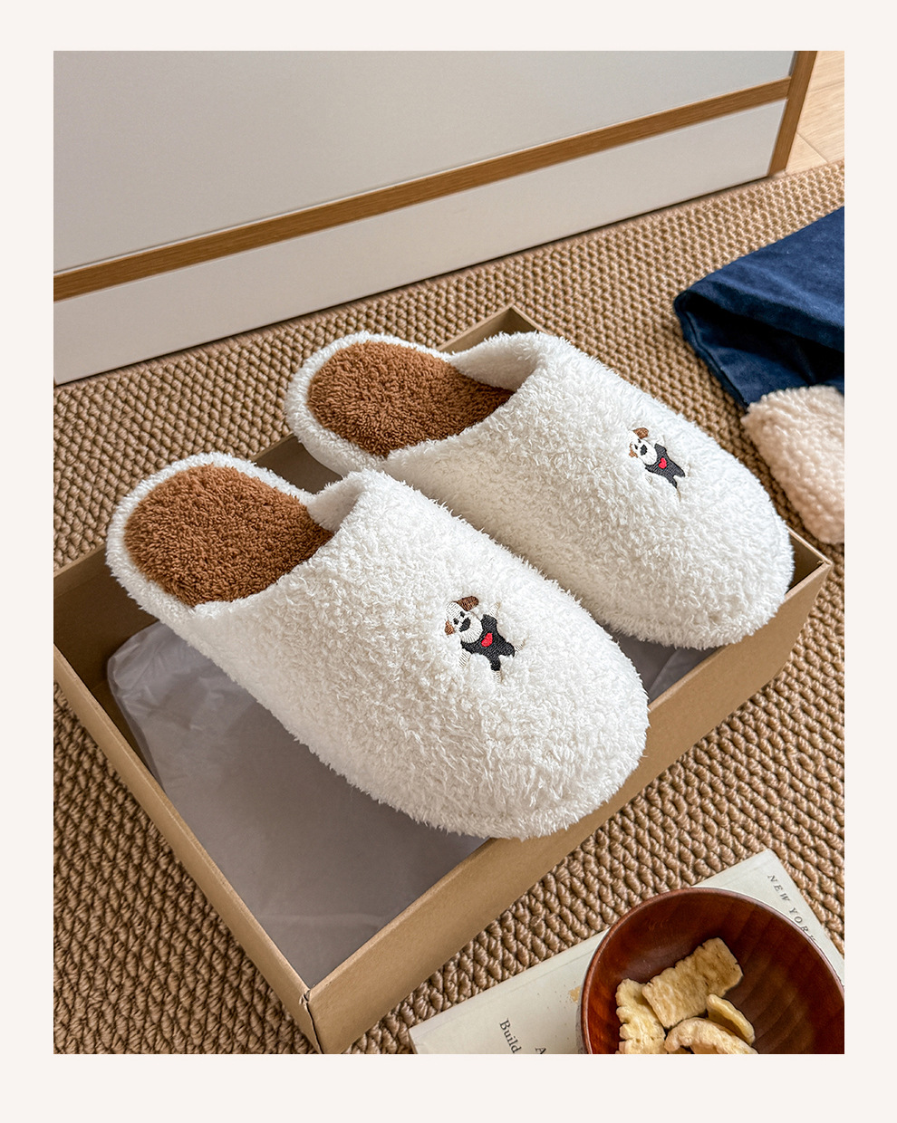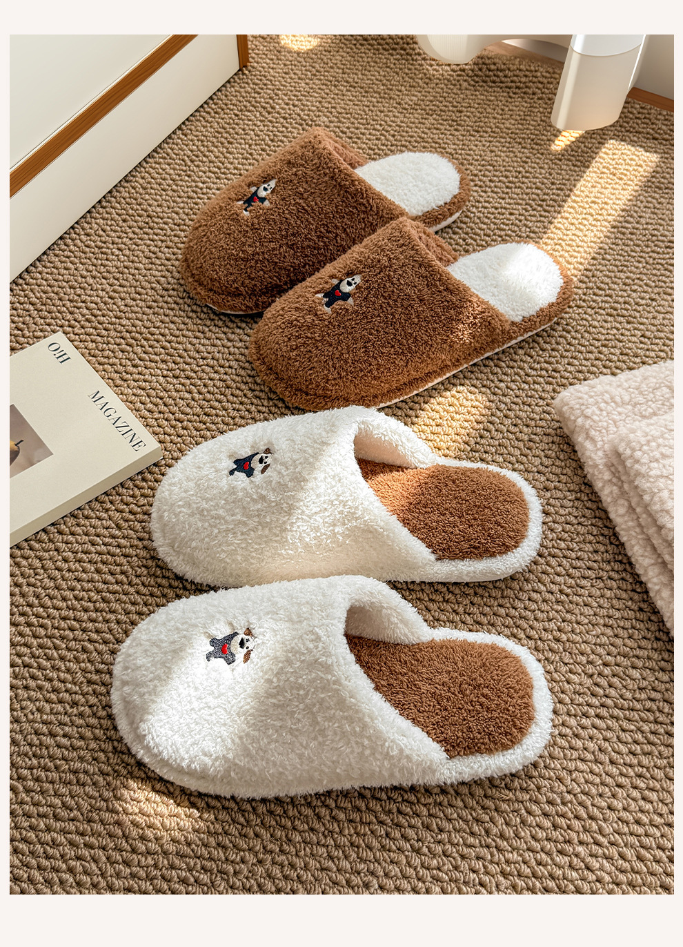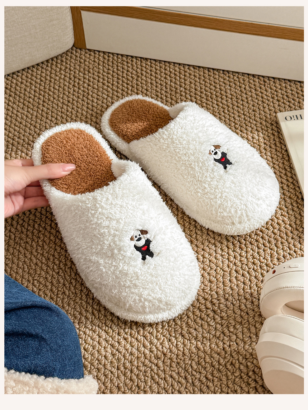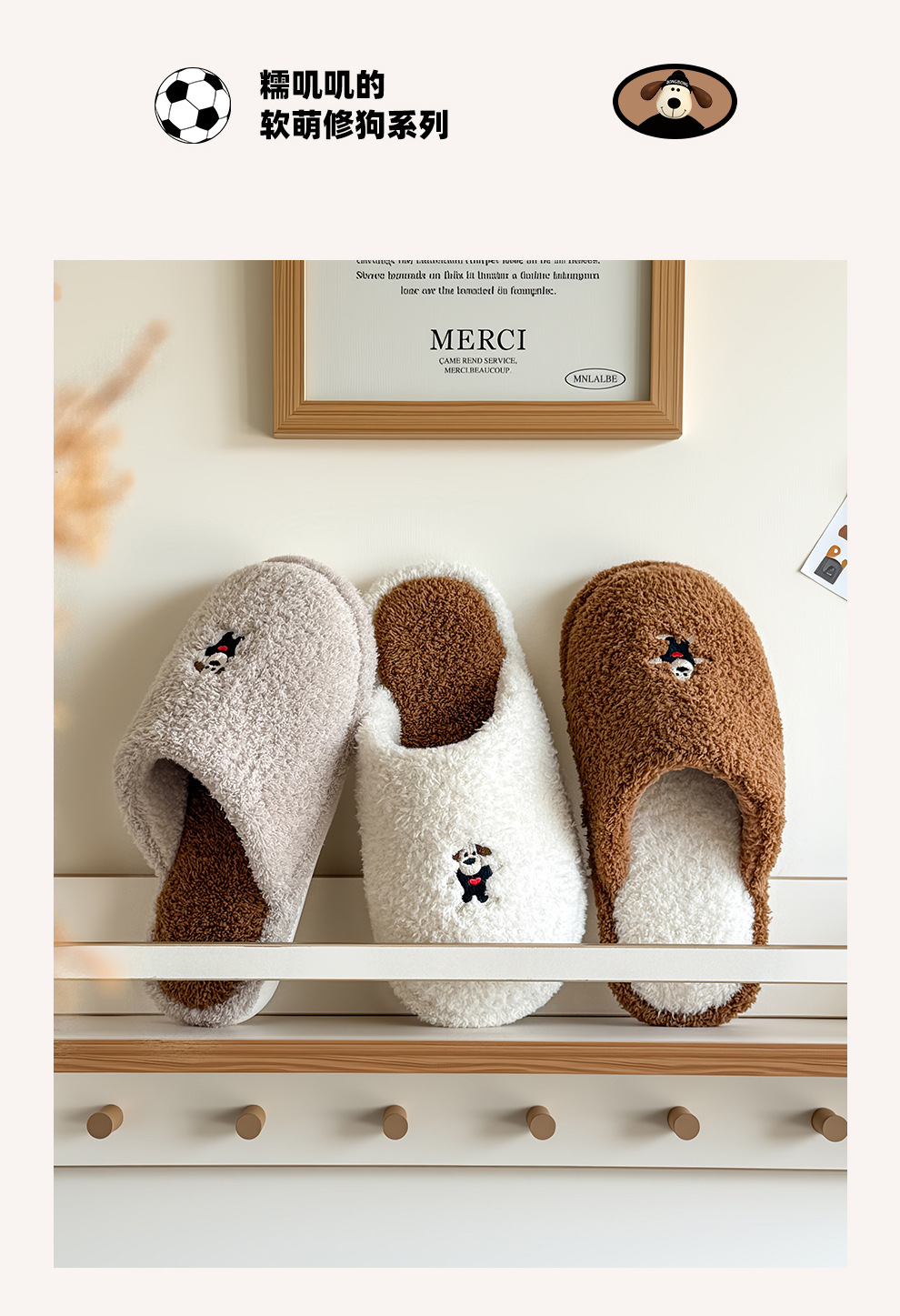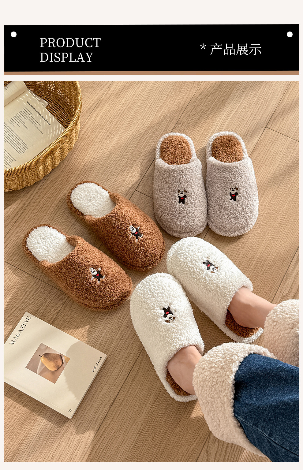 新款舒適居家可愛卡通小狗冬季棉拖鞋男女情侶款保暖室內棉拖鞋女