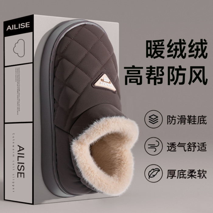 男士棉拖鞋冬季包跟防水外穿2025新款居家用厚底保暖加絨棉鞋男式