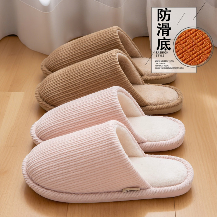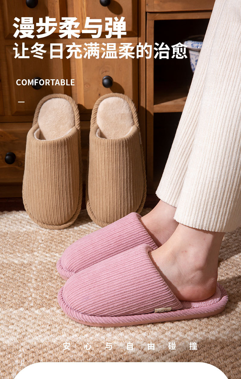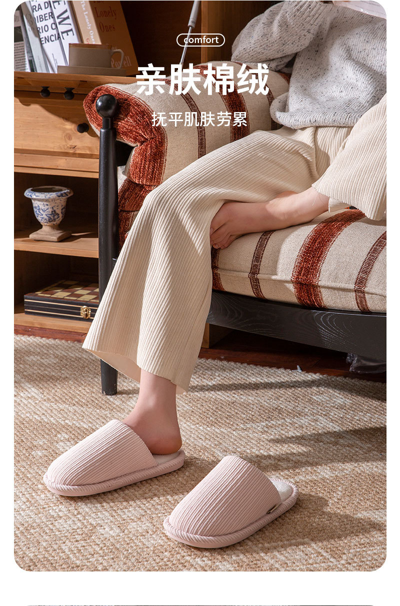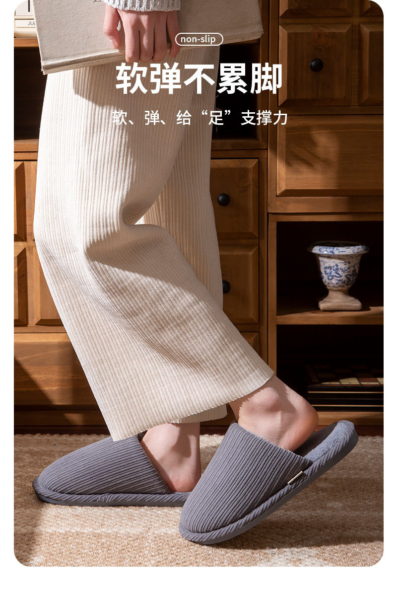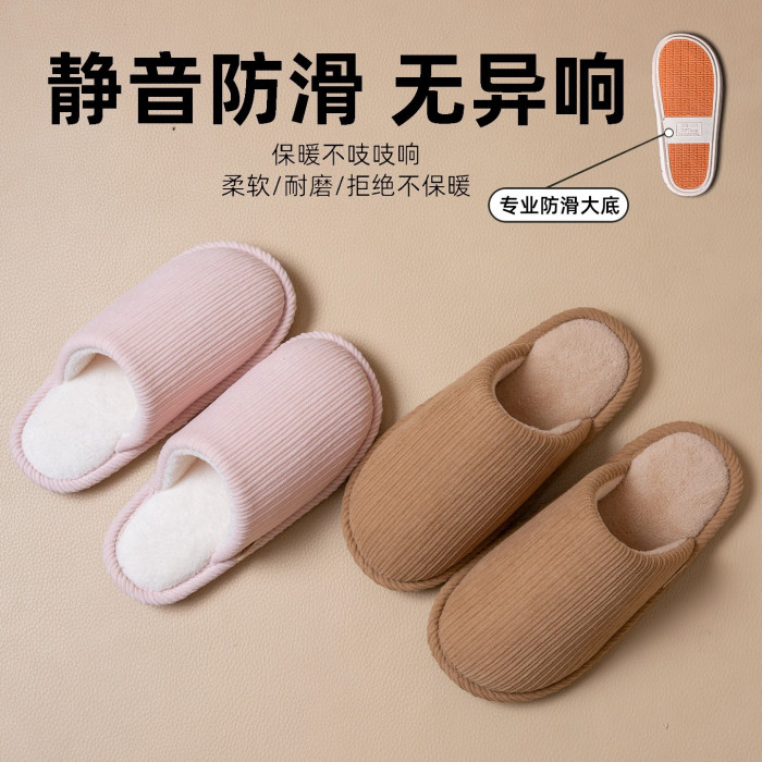 日式靜音棉拖鞋女2025秋冬新款室內保暖加絨居家防滑地板拖鞋男士