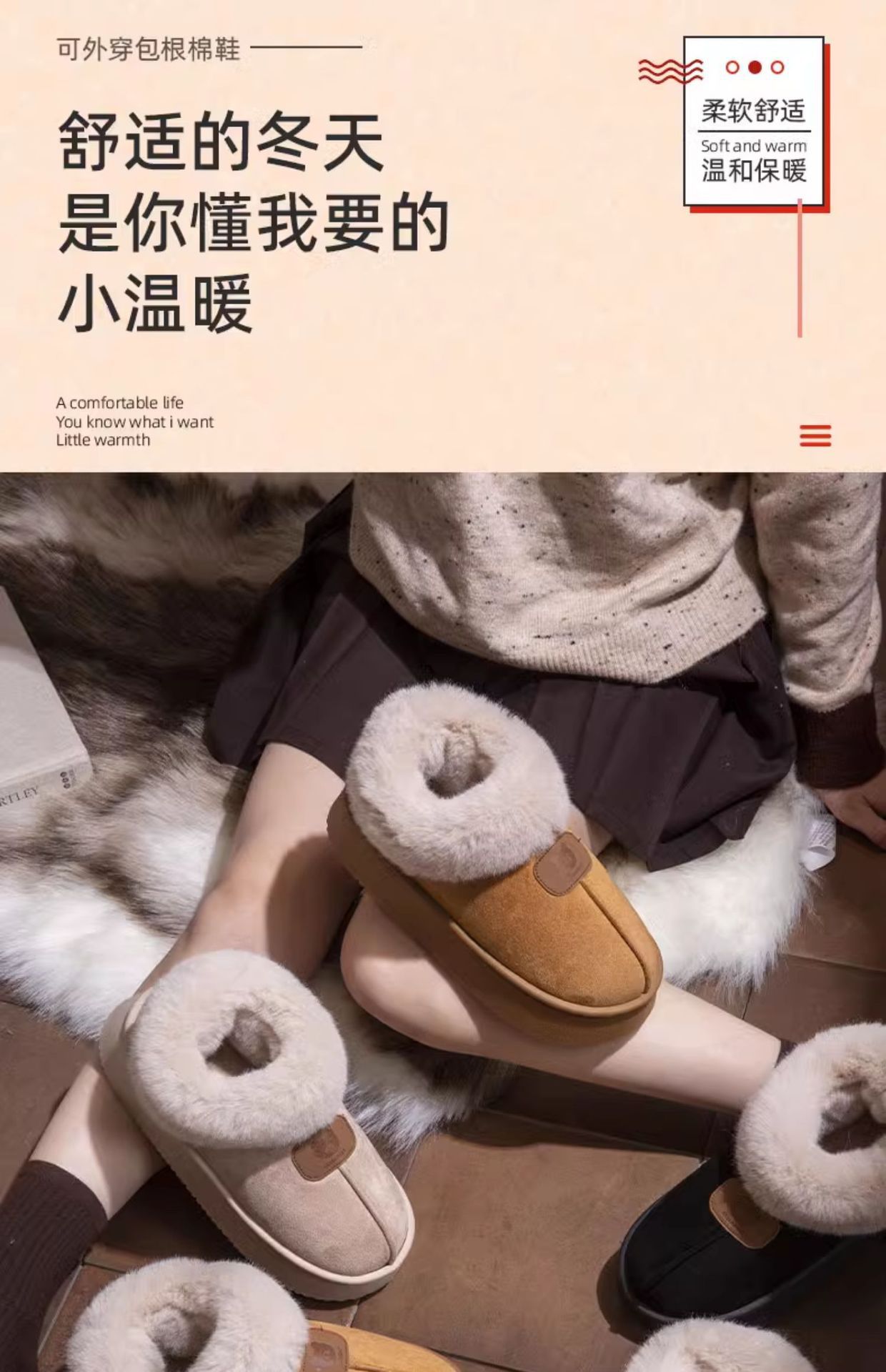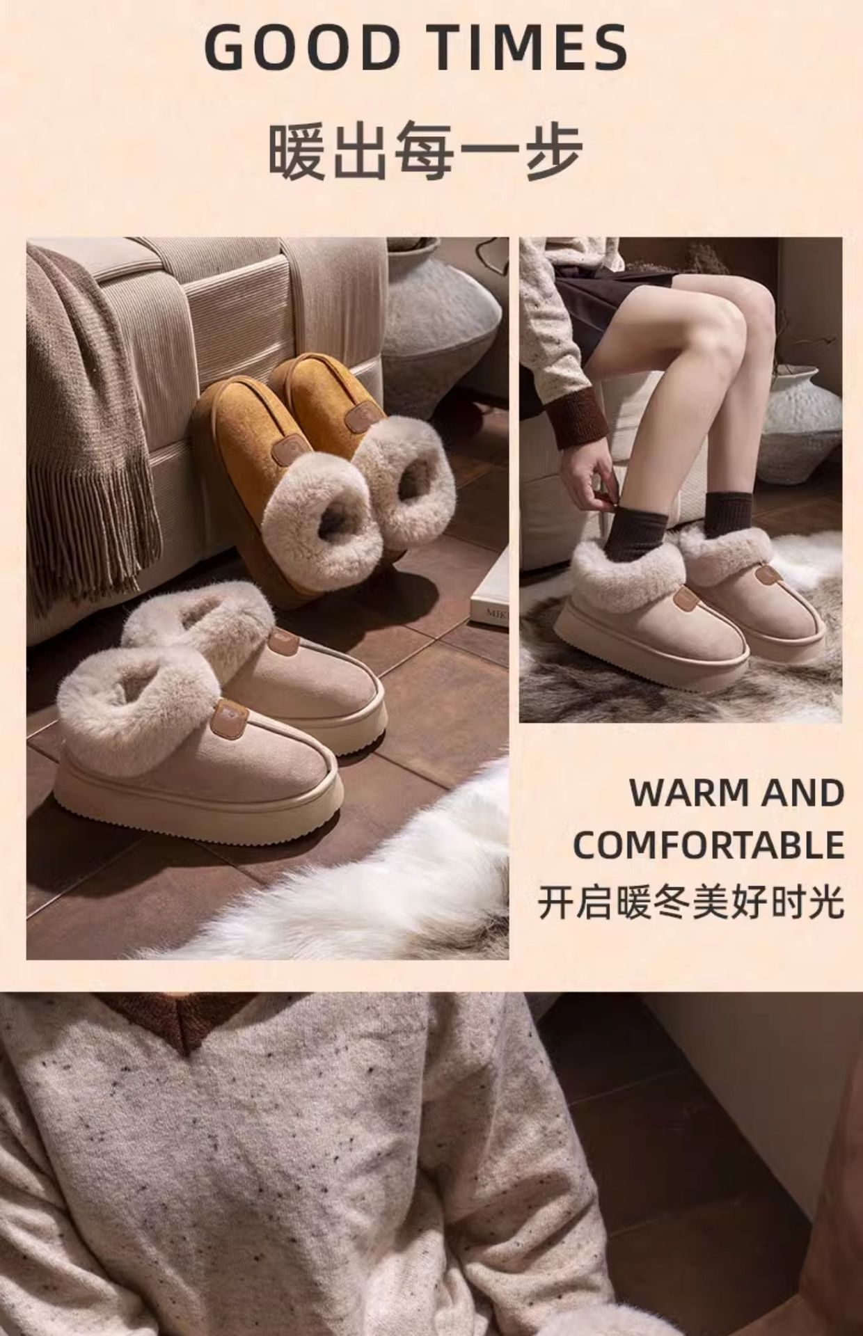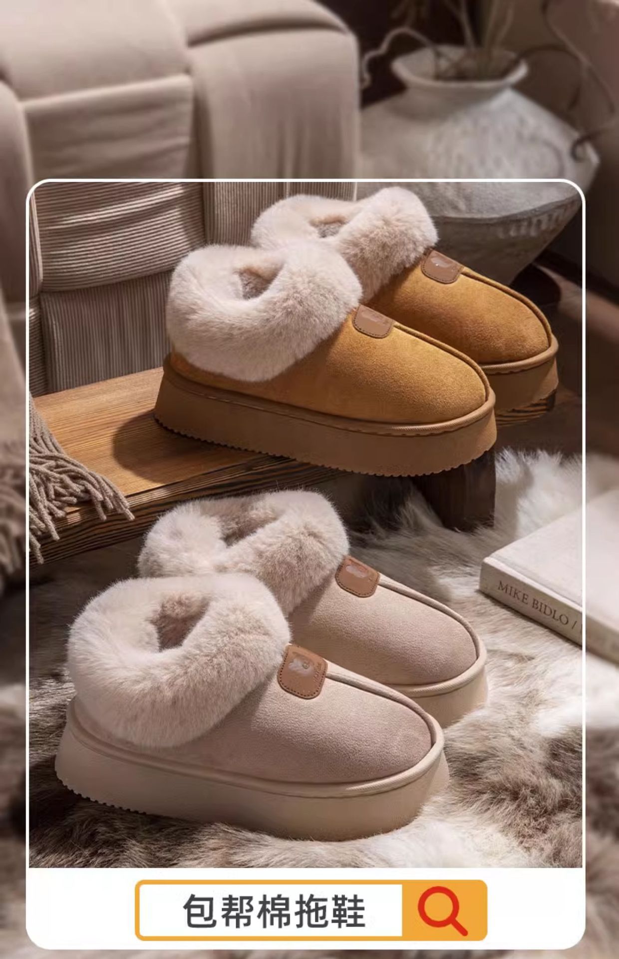 厚底棉鞋女款冬季外穿加絨加厚雪地靴時尚家居保暖包跟棉拖鞋女士