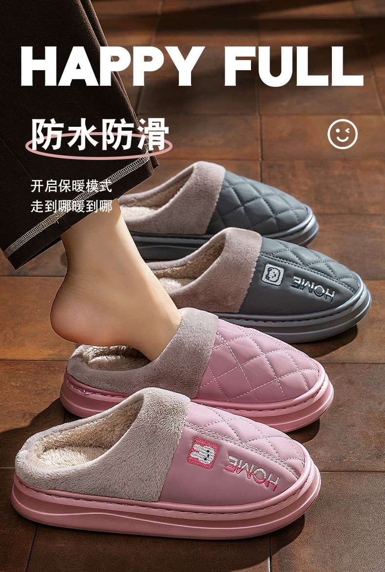 防水棉拖鞋老人2025新款秋冬季室內家居防臭防滑保暖毛絨棉拖外穿