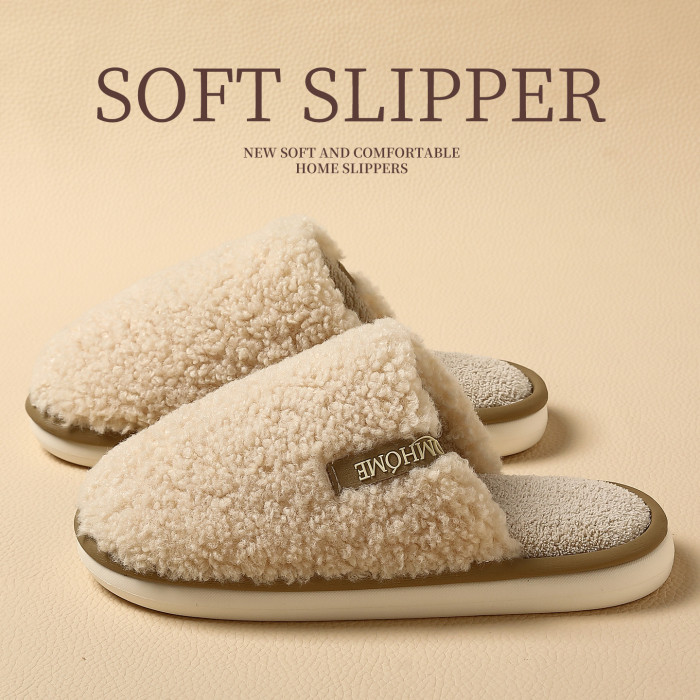 防寒保暖加厚軟底棉拖鞋男女同款搖粒絨字母居家一字棉拖鞋新款