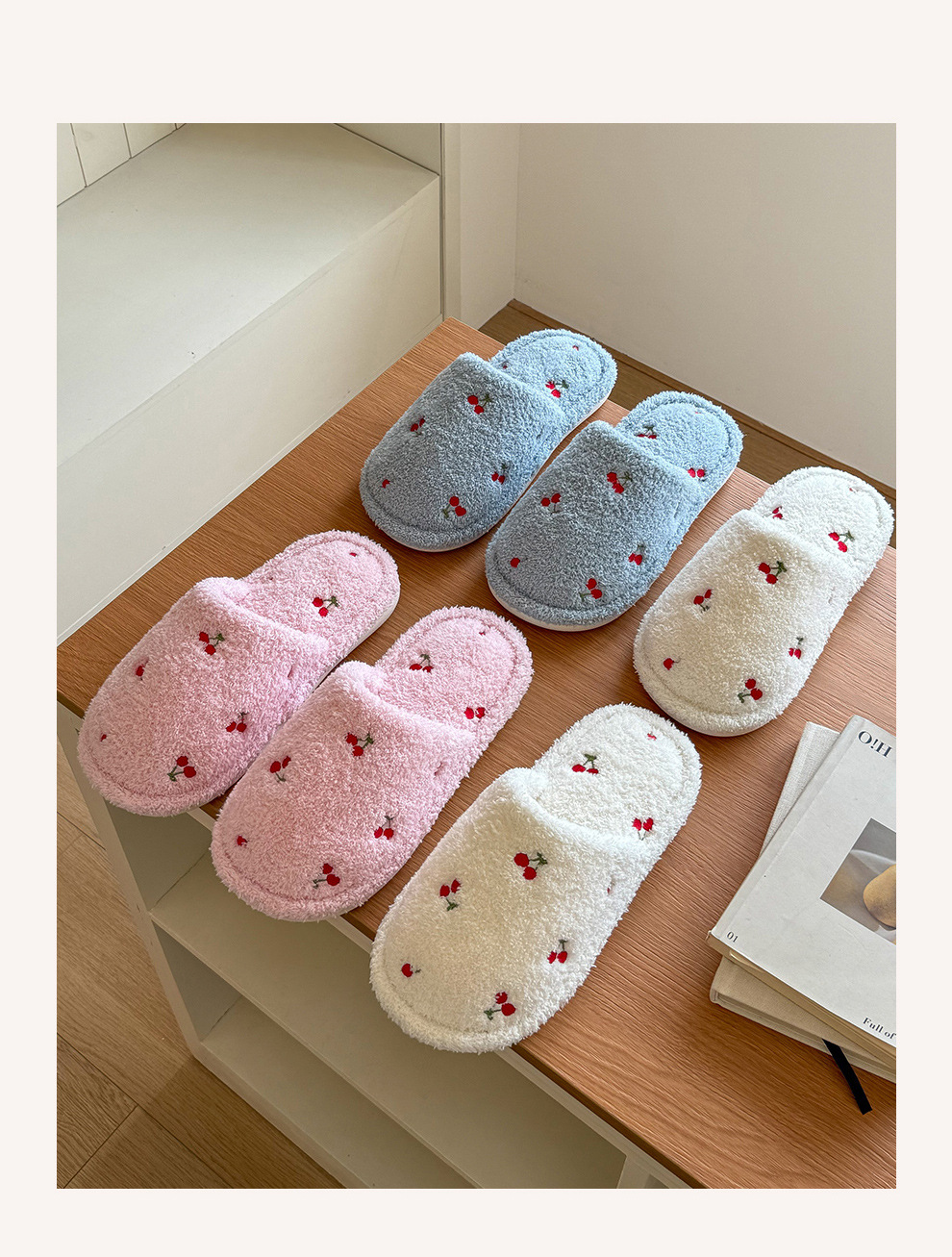 可愛櫻桃棉拖鞋女秋冬季毛絨保暖家居室內女士家用防滑地板拖