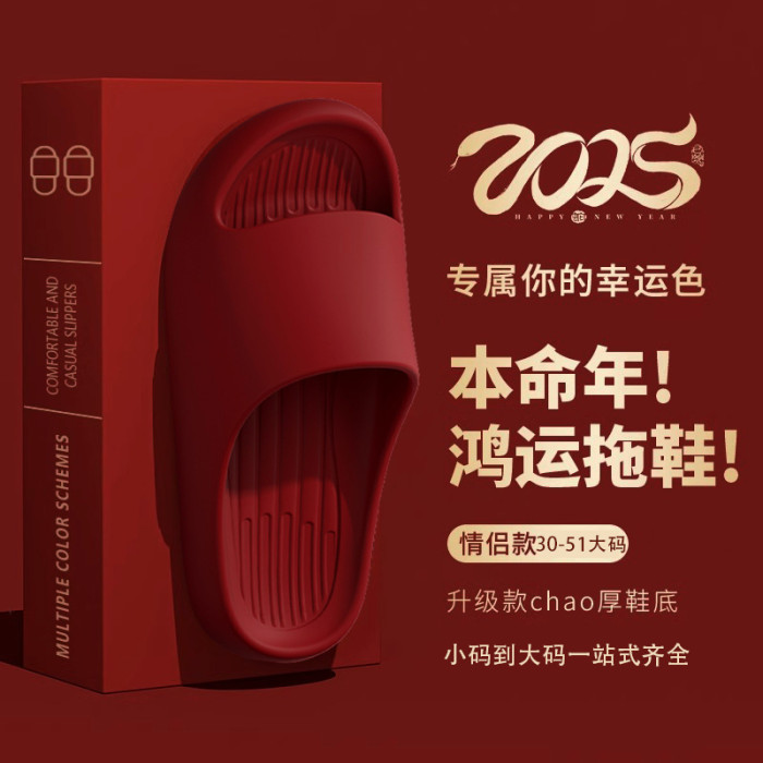 eva踩屎感紅色大碼涼拖鞋男女本命年居家用防滑防臭情侶浴室拖鞋