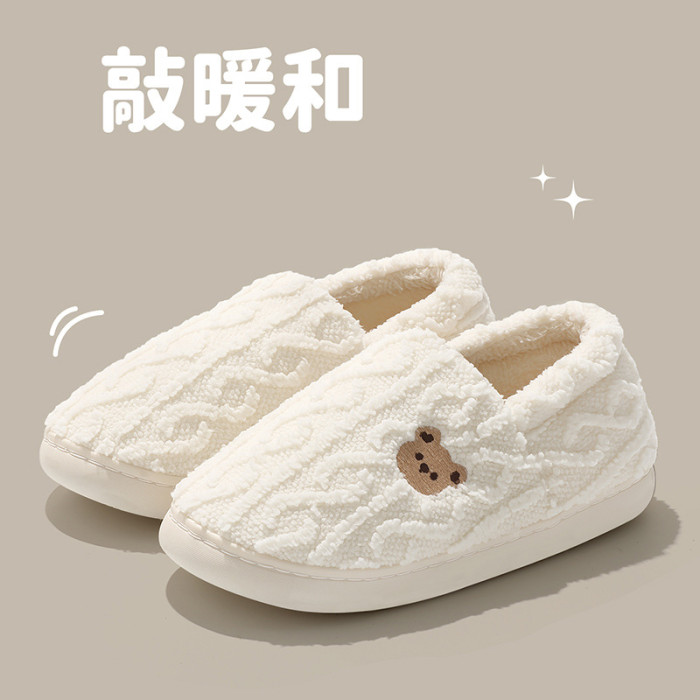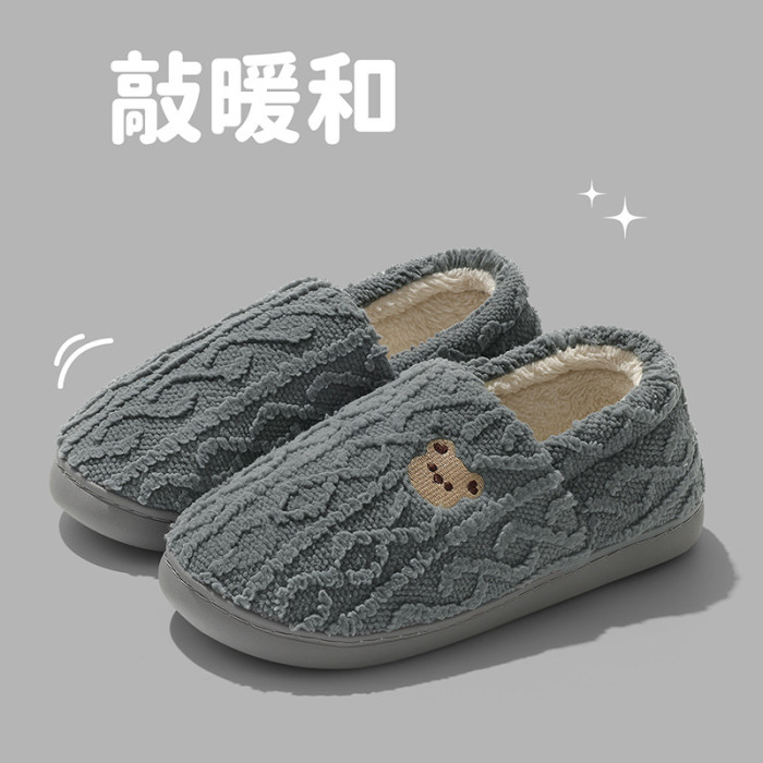家用棉拖鞋女冬季情侶卡通小熊可愛室內家居毛絨保暖毛拖鞋男