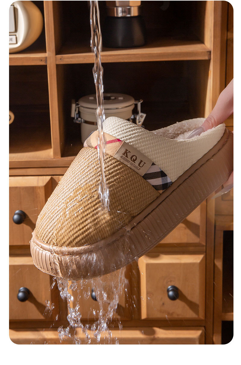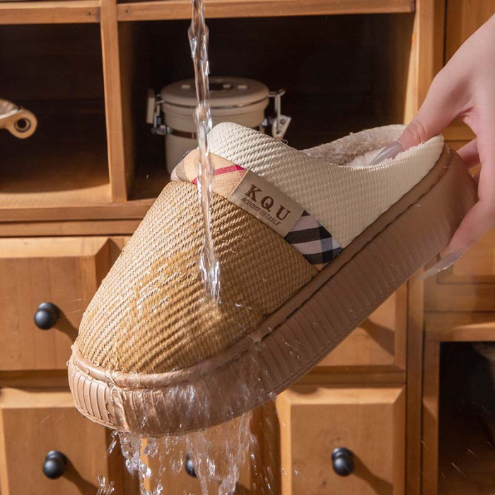 特大號棉拖鞋男冬季居家防滑46 47加大碼厚底保暖外穿防水皮拖女