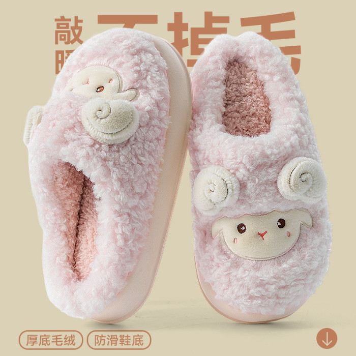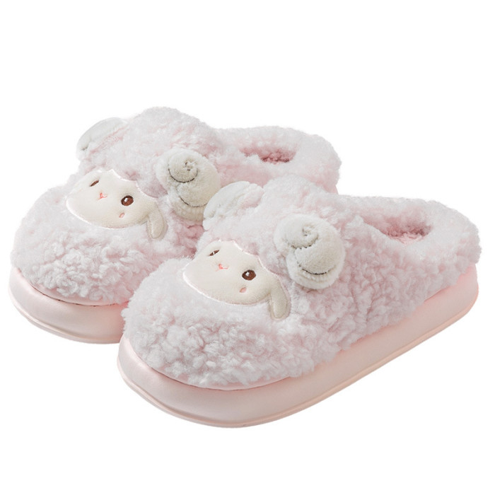 小綿羊情侶棉拖鞋女包跟可愛卡通冬天加絨月子宿舍居家用室內棉鞋