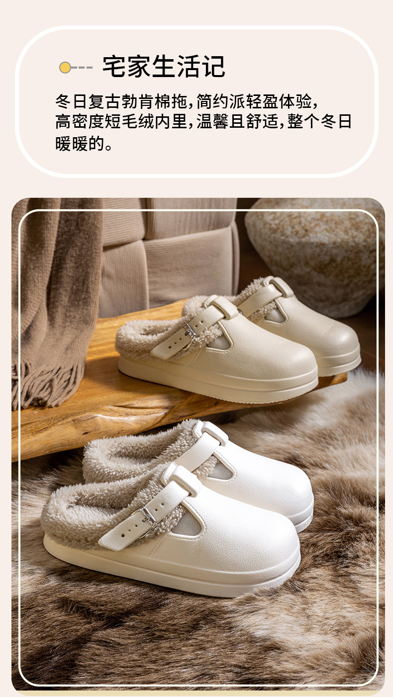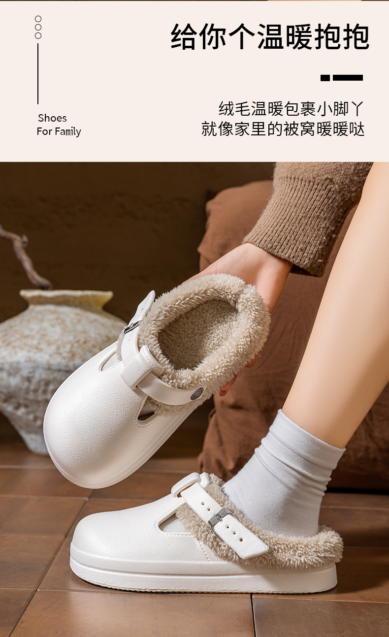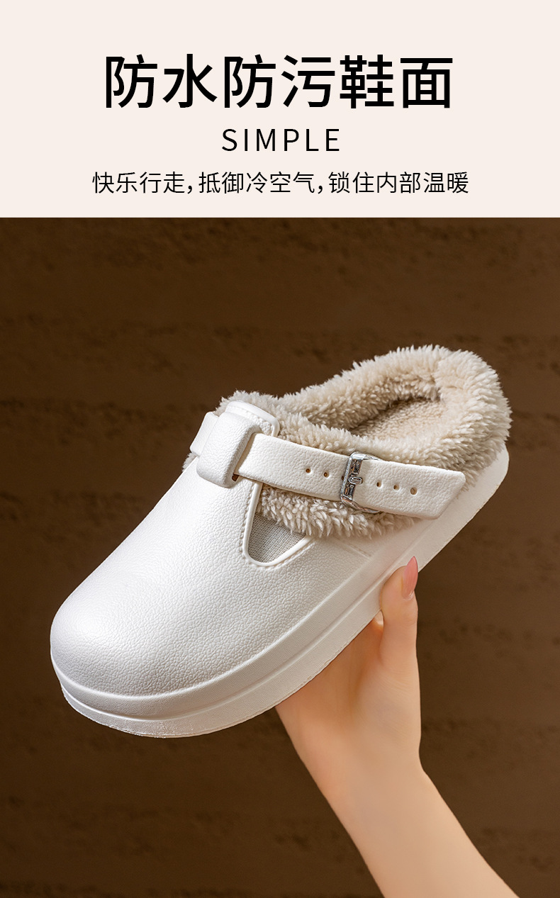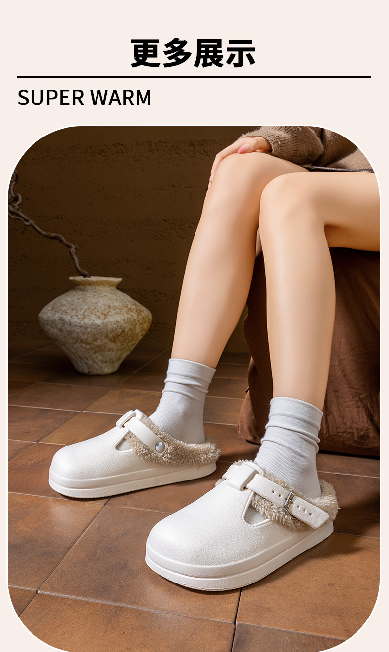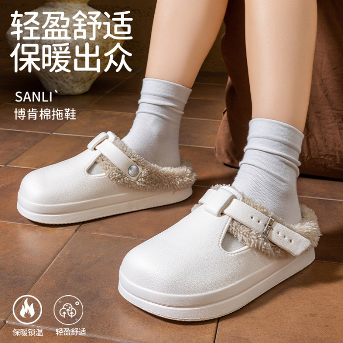 2025時尚勃肯防水加絨棉拖鞋女士新款潮流保暖加絨防滑半拖外穿