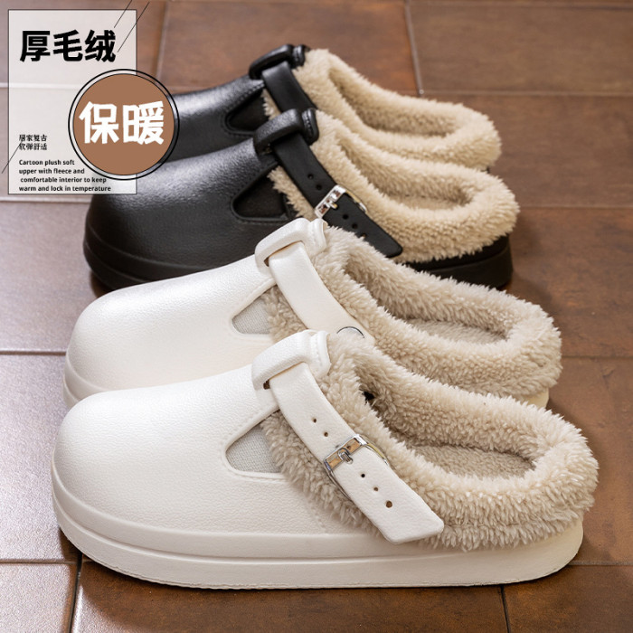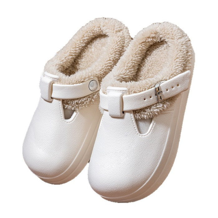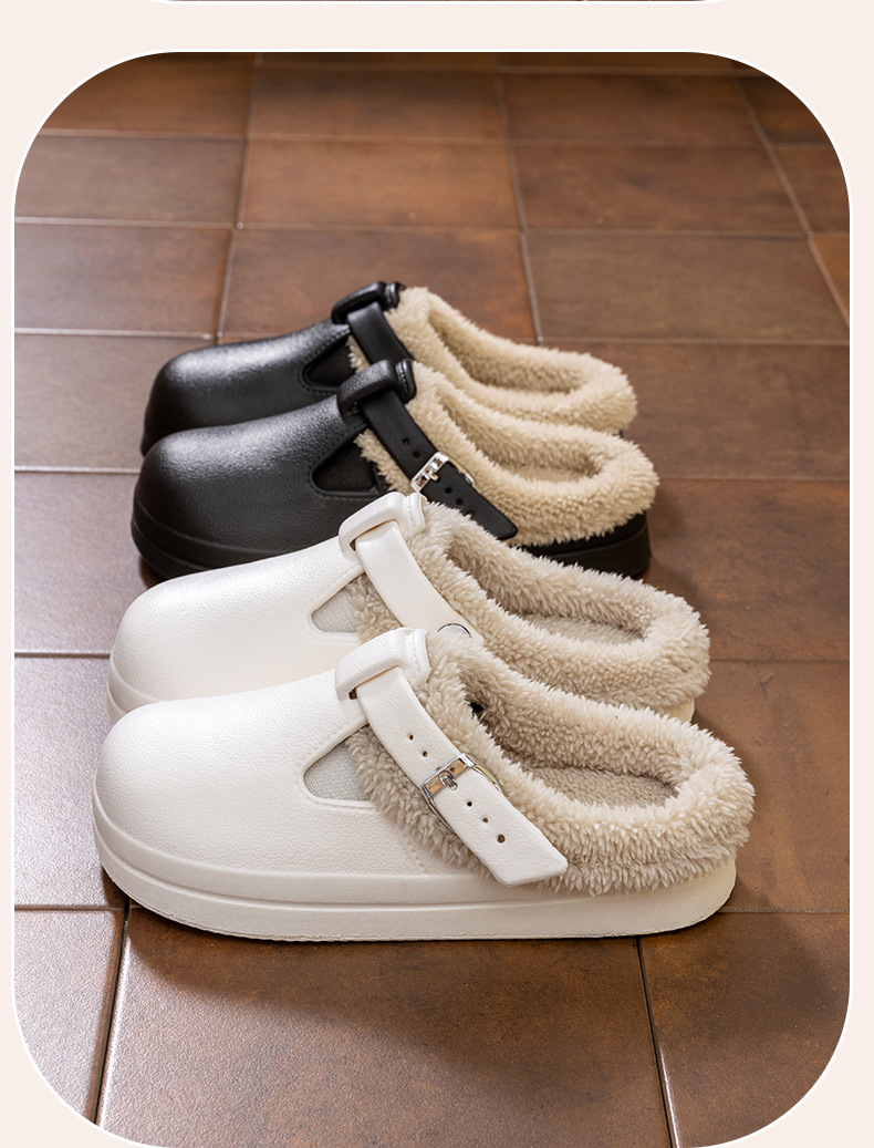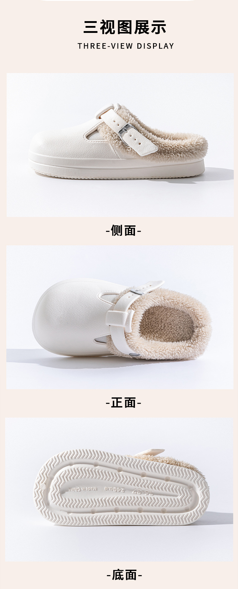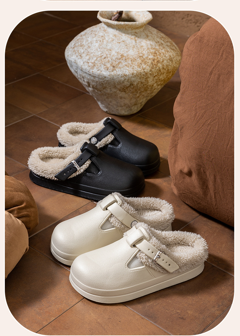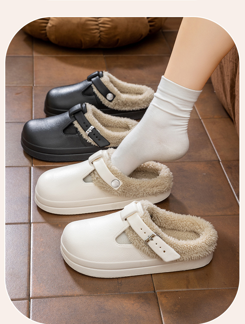 2025時尚勃肯防水加絨棉拖鞋女士新款潮流保暖加絨防滑半拖外穿
