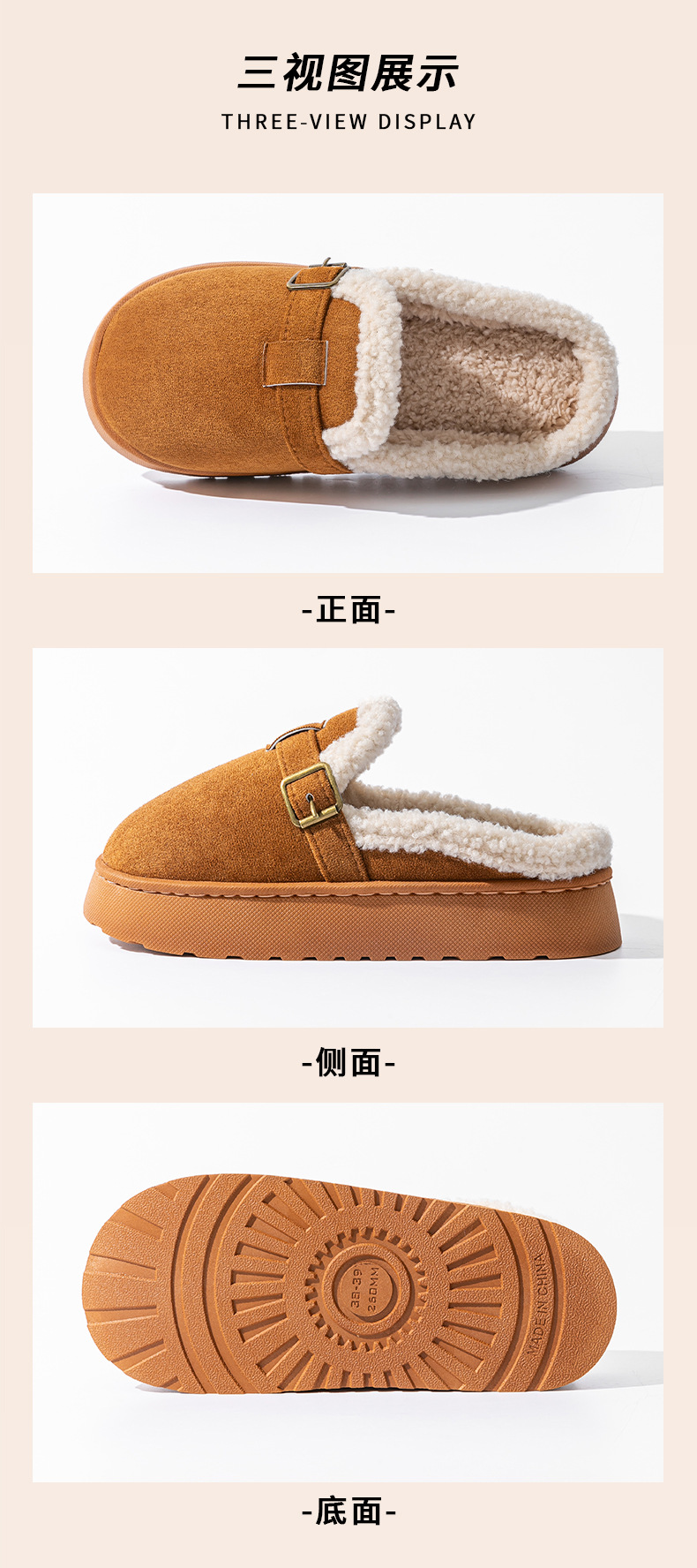 時尚勃肯鞋女秋冬季新款室內家居毛毛絨厚底保暖棉拖鞋女冬天外穿