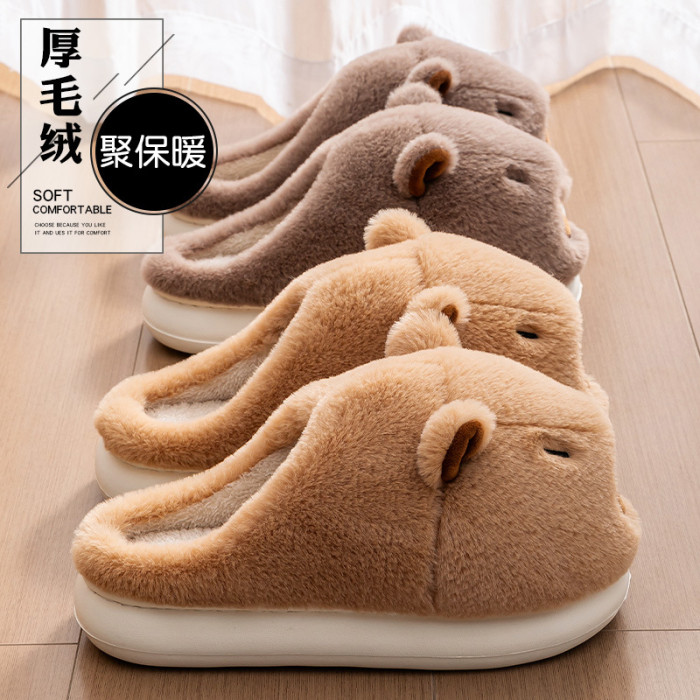 卡皮巴拉棉拖鞋女款冬季2025新款室內家居厚實保暖加絨踩屎感棉拖