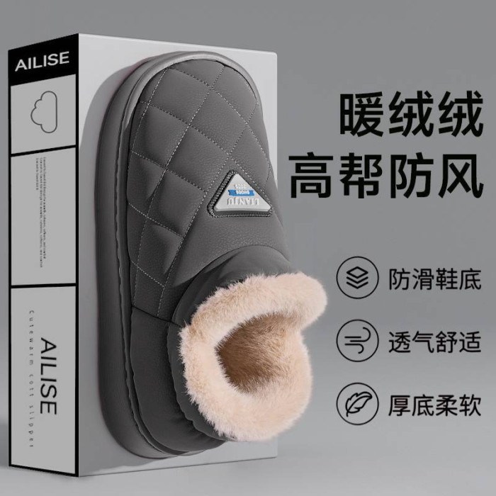 踩屎感棉拖鞋男士秋冬包跟防水外穿2025新款厚底保暖加絨加厚棉鞋