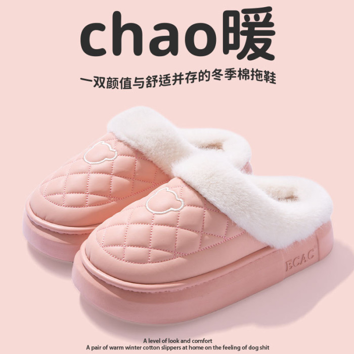 防水棉拖鞋男士秋冬季2025新款室內家居毛毛絨保暖防滑月子棉拖女