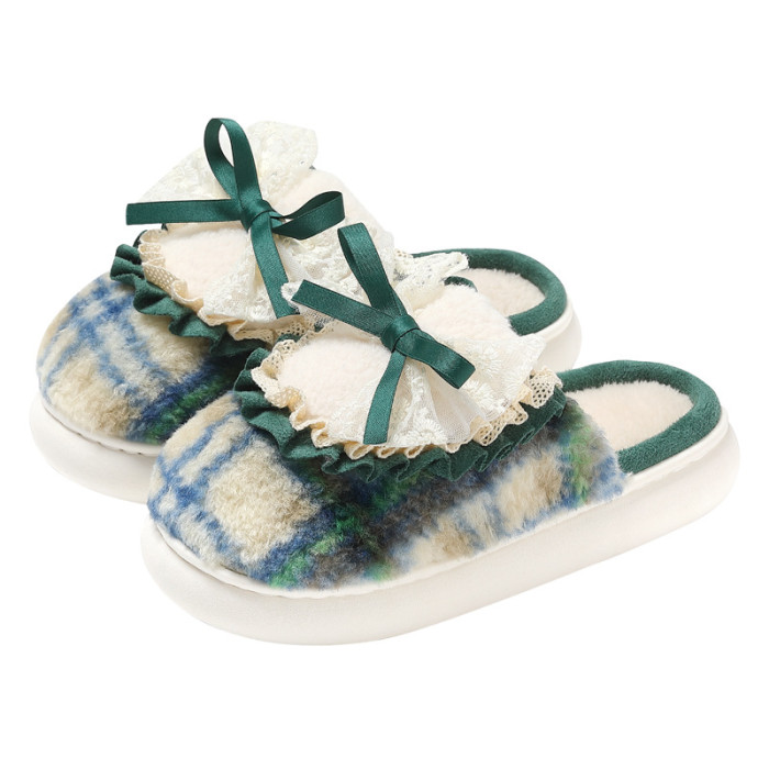 蝴蝶結棉拖鞋女款秋冬季外穿加絨保暖室內家居防滑毛毛拖棉拖女士