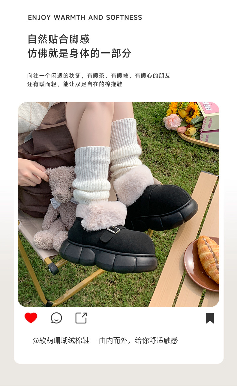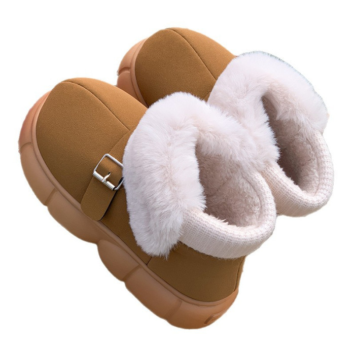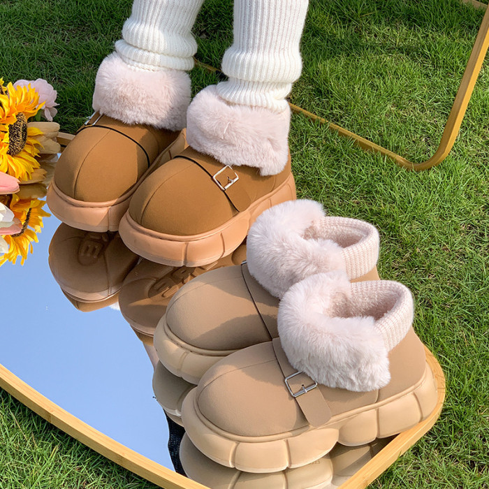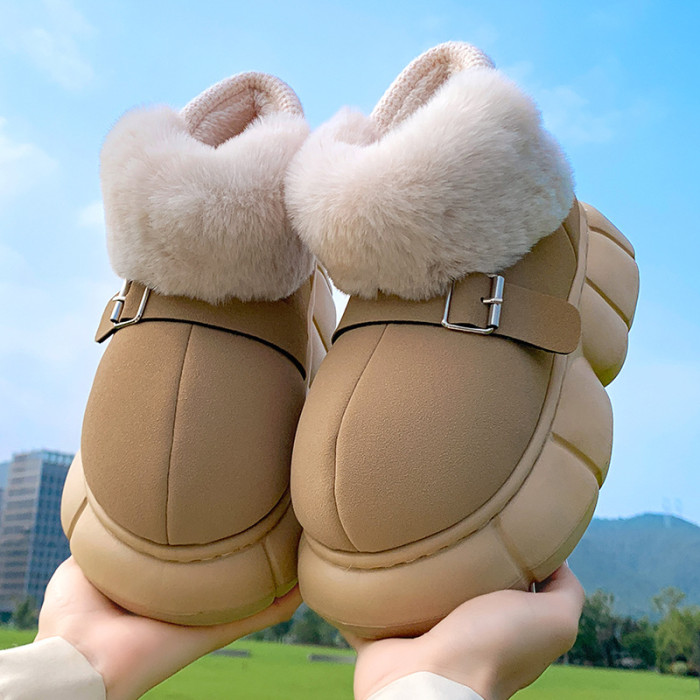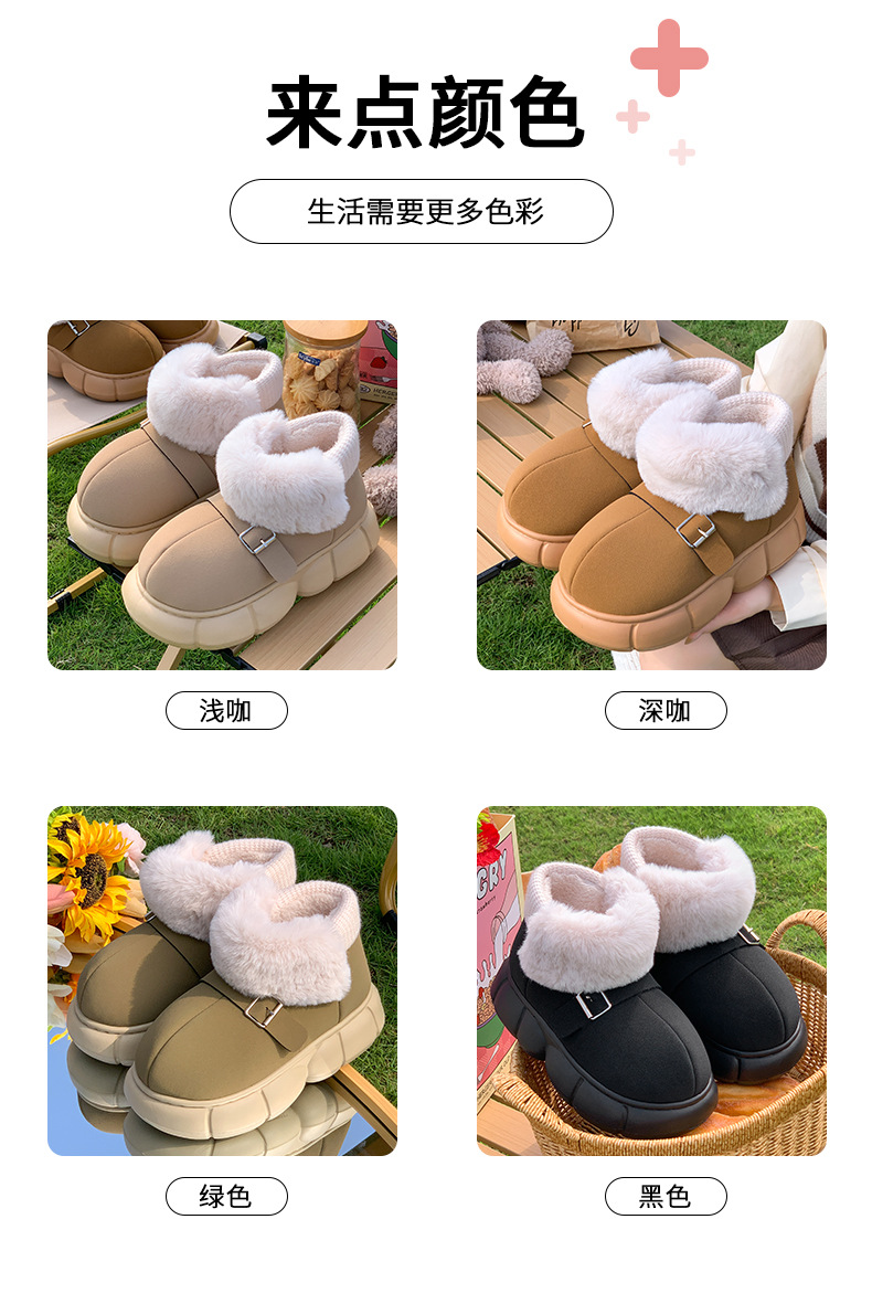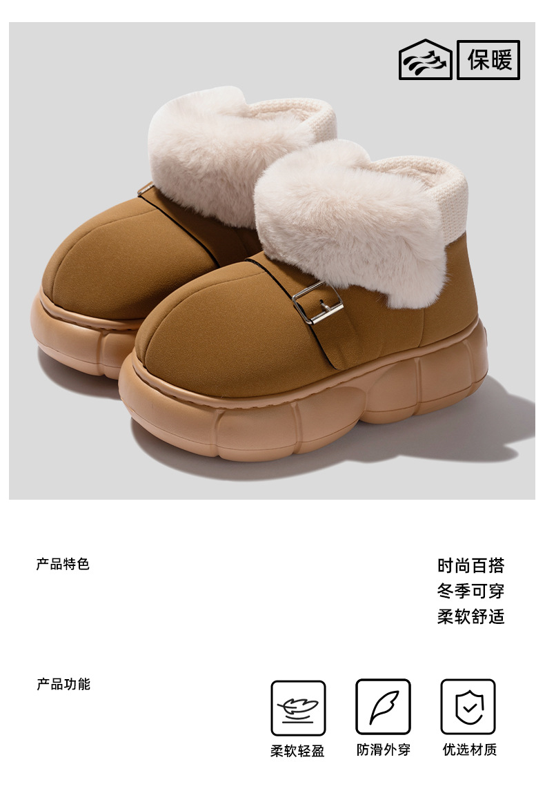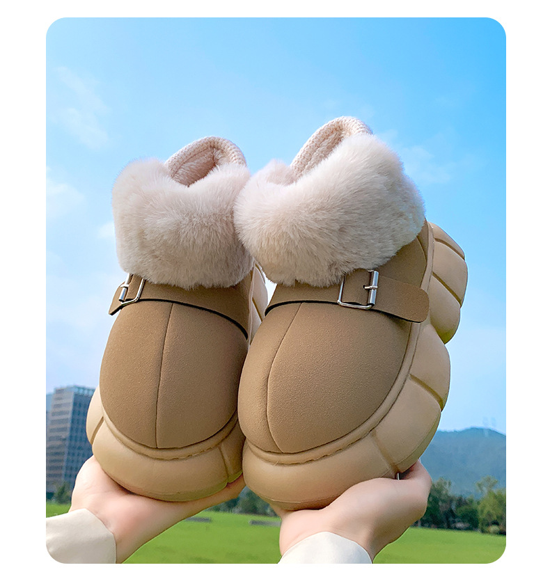 秋冬季新款防滑棉拖鞋室內厚底保暖踩屎感可外穿包跟女款雪地靴