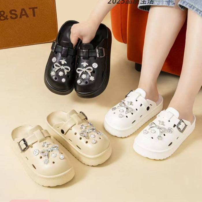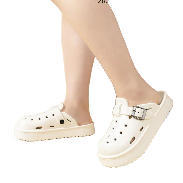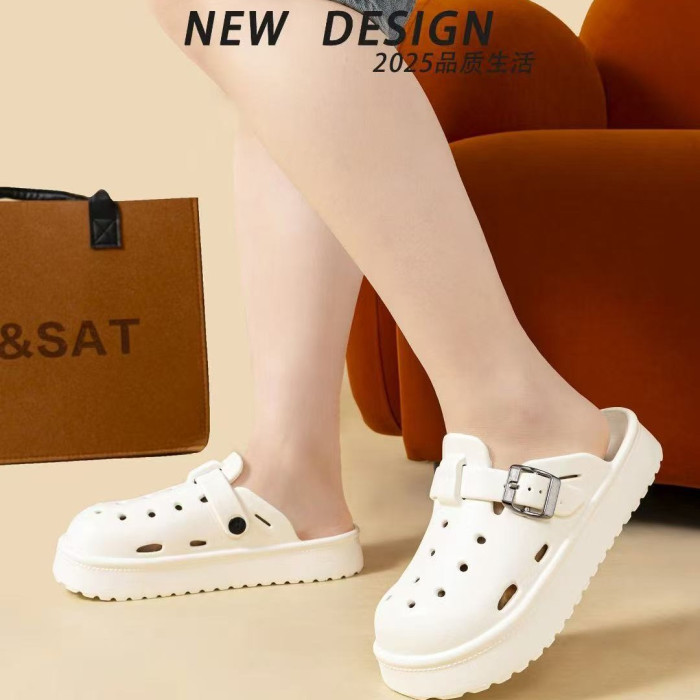 2025新款厚底包頭洞洞鞋女夏季外穿INS沙灘勃肯半拖防滑