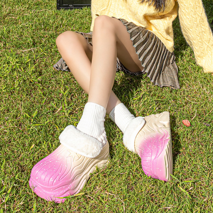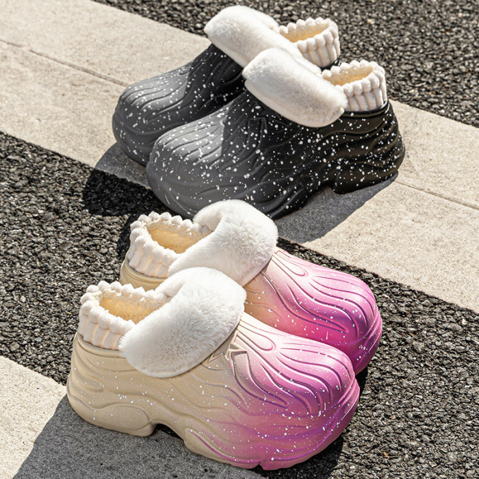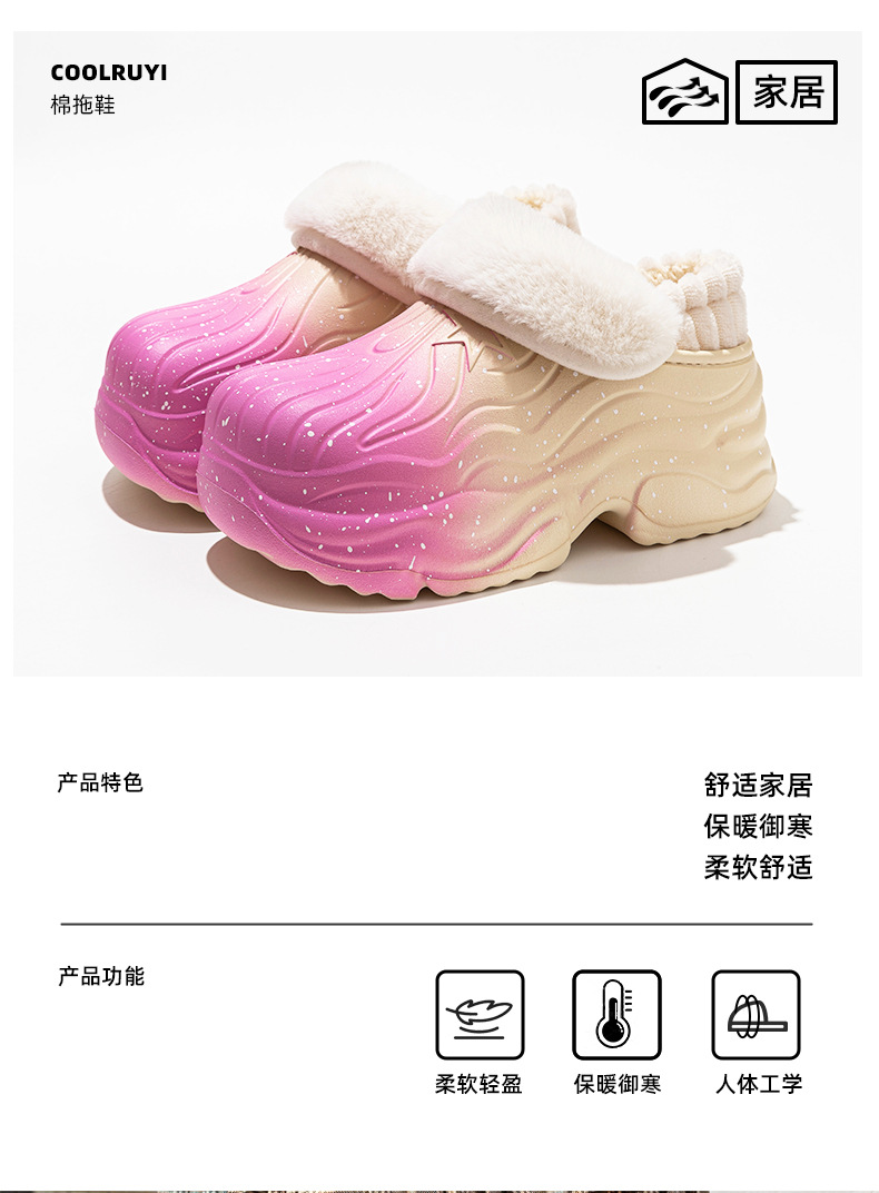 EVA 星空漸變可外穿棉拖鞋女秋冬防滑保暖厚底加絨居家外穿棉鞋