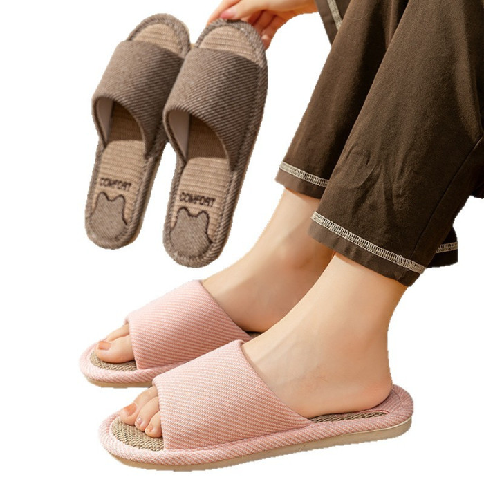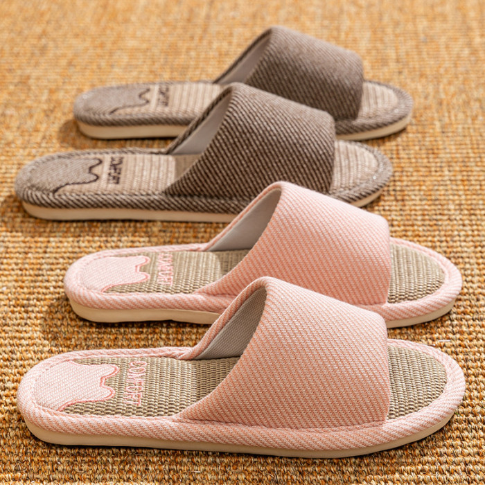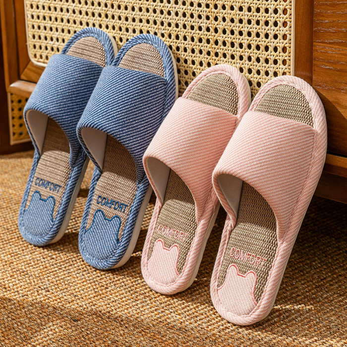 四季防滑親膚亞麻涼拖鞋秋冬涼爽透氣保暖居家舒適靜音拖鞋
