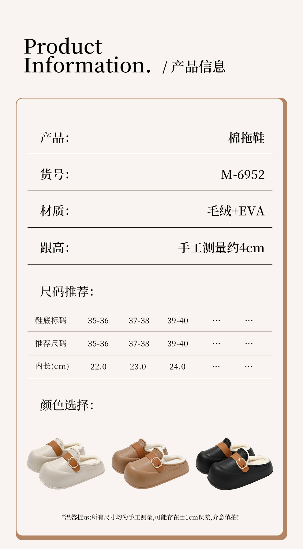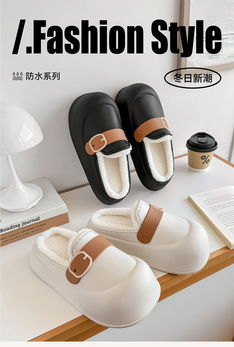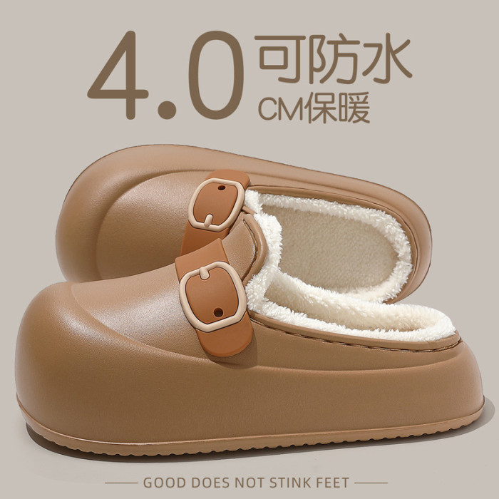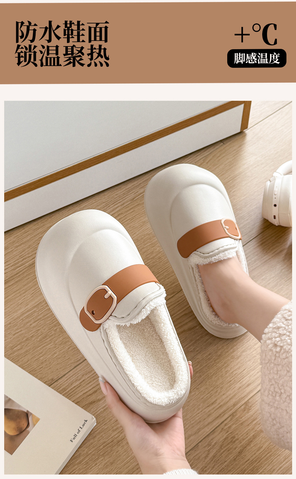 防水棉拖鞋女秋冬季外穿毛絨保暖eva厚底防滑女士半包頭棉拖