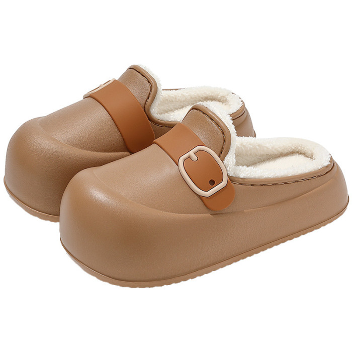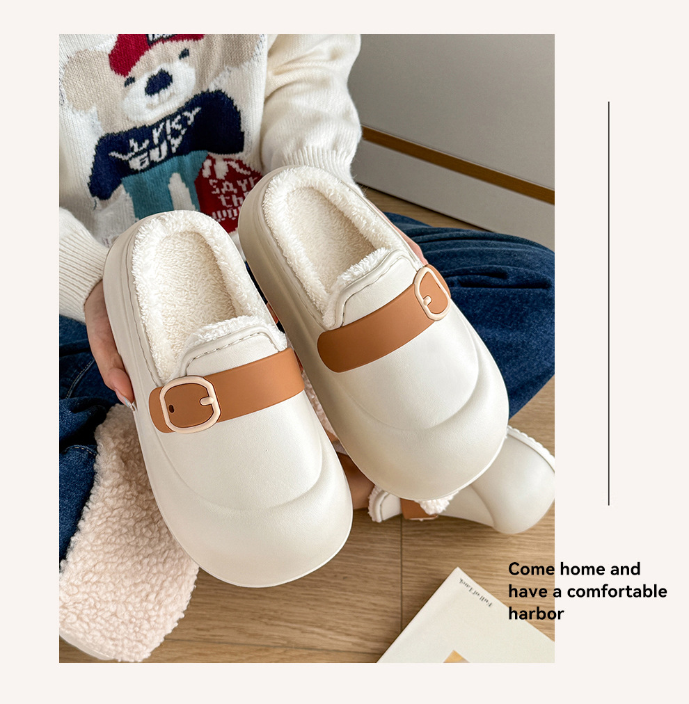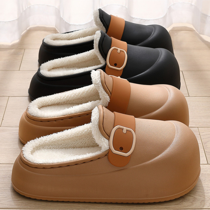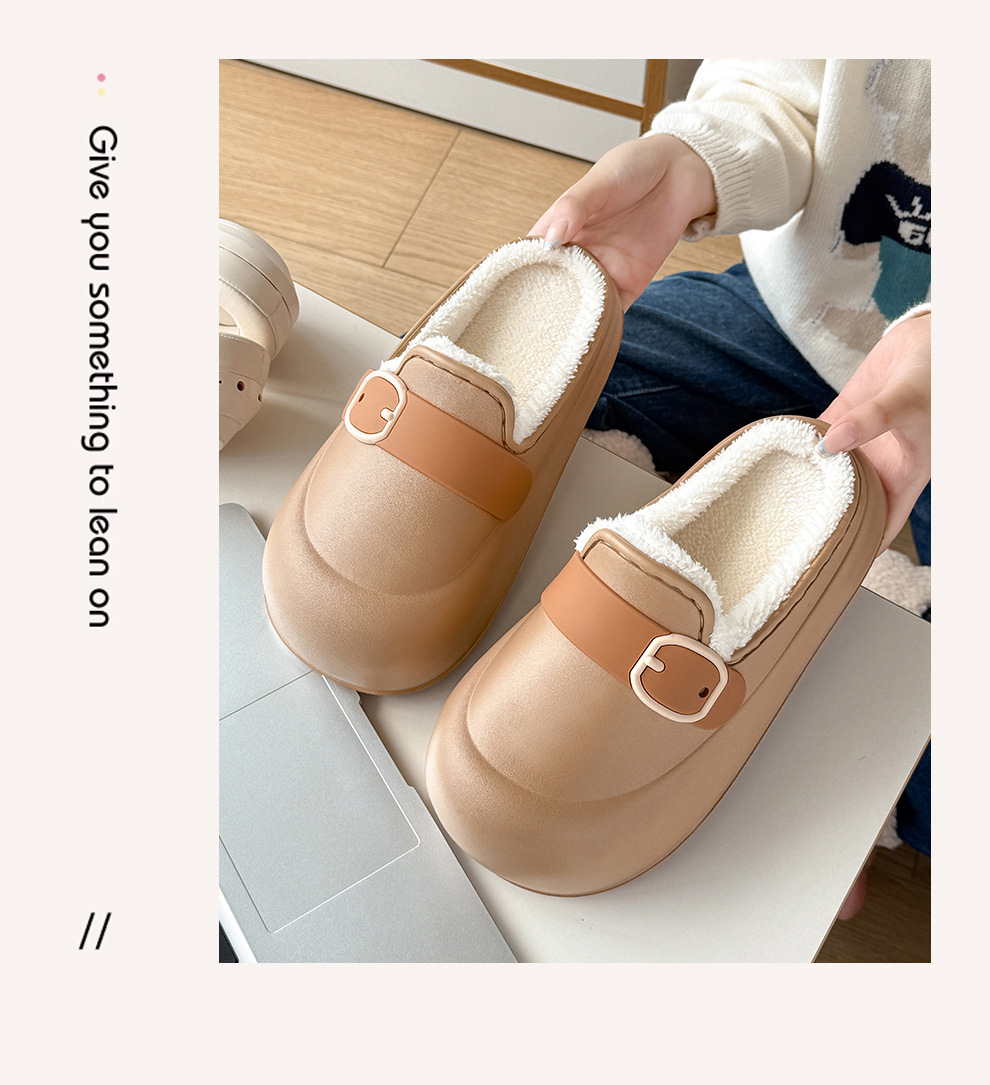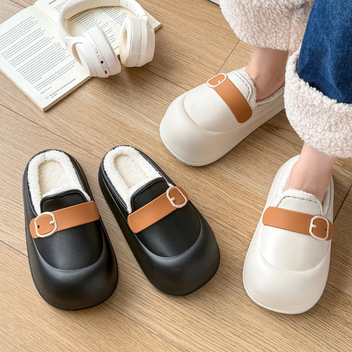 防水棉拖鞋女秋冬季外穿毛絨保暖eva厚底防滑女士半包頭棉拖