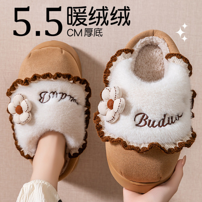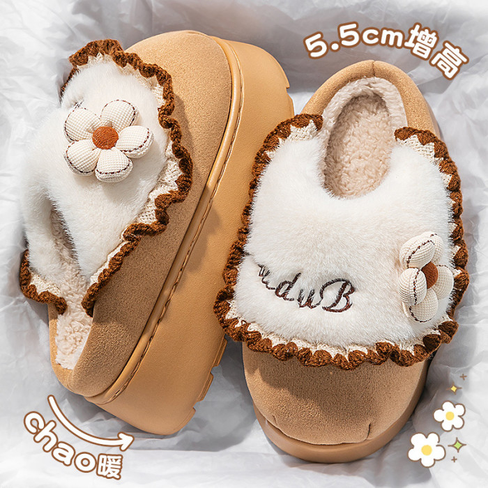 增高棉拖鞋女款2025新款秋冬季室內家居可愛毛毛絨保暖厚底棉拖女