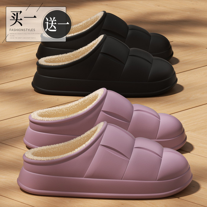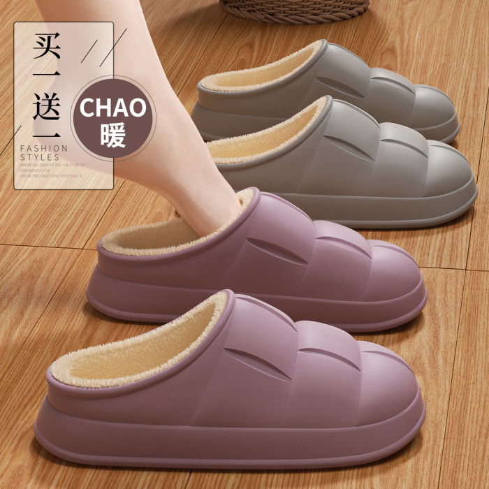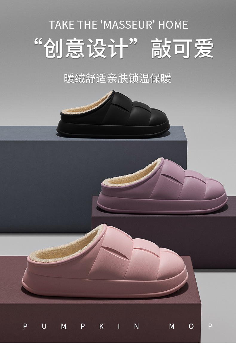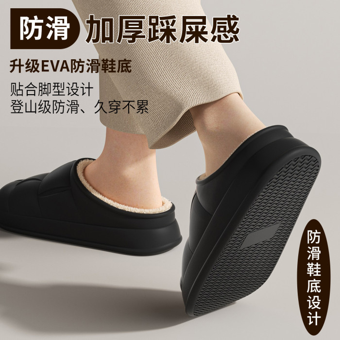 棉拖鞋女秋冬季新款室內居家防滑踩屎感加絨保暖防水半拖毛套男士