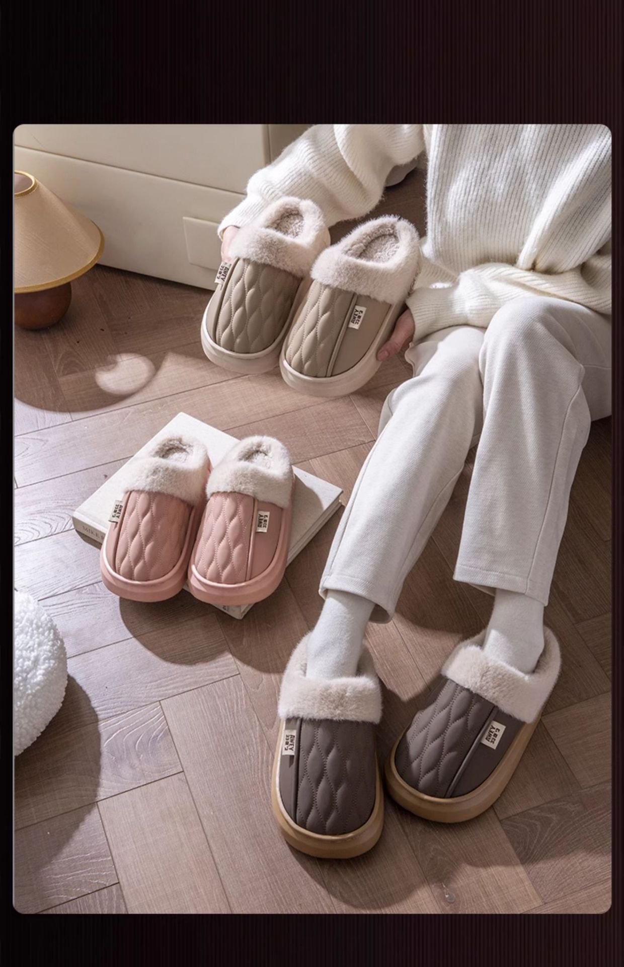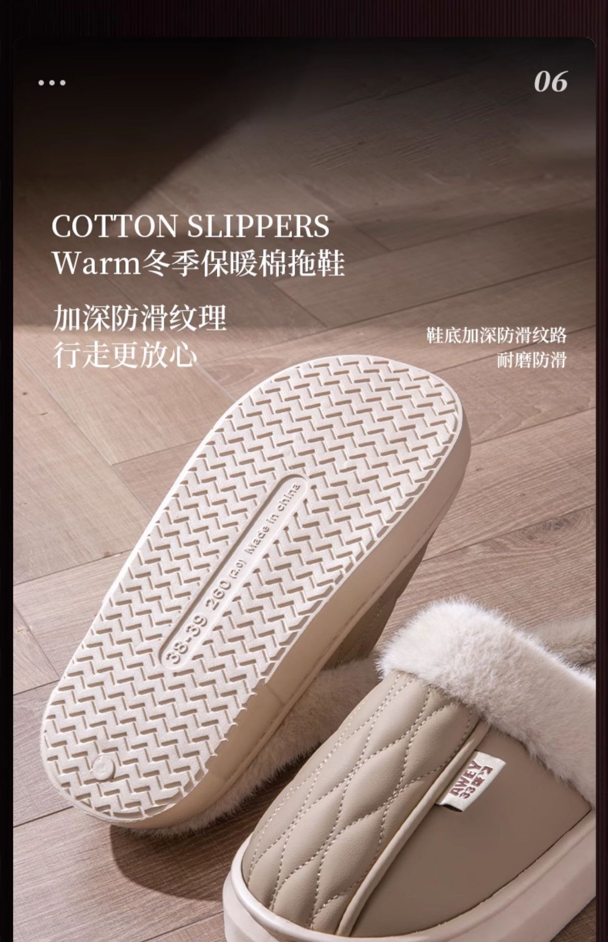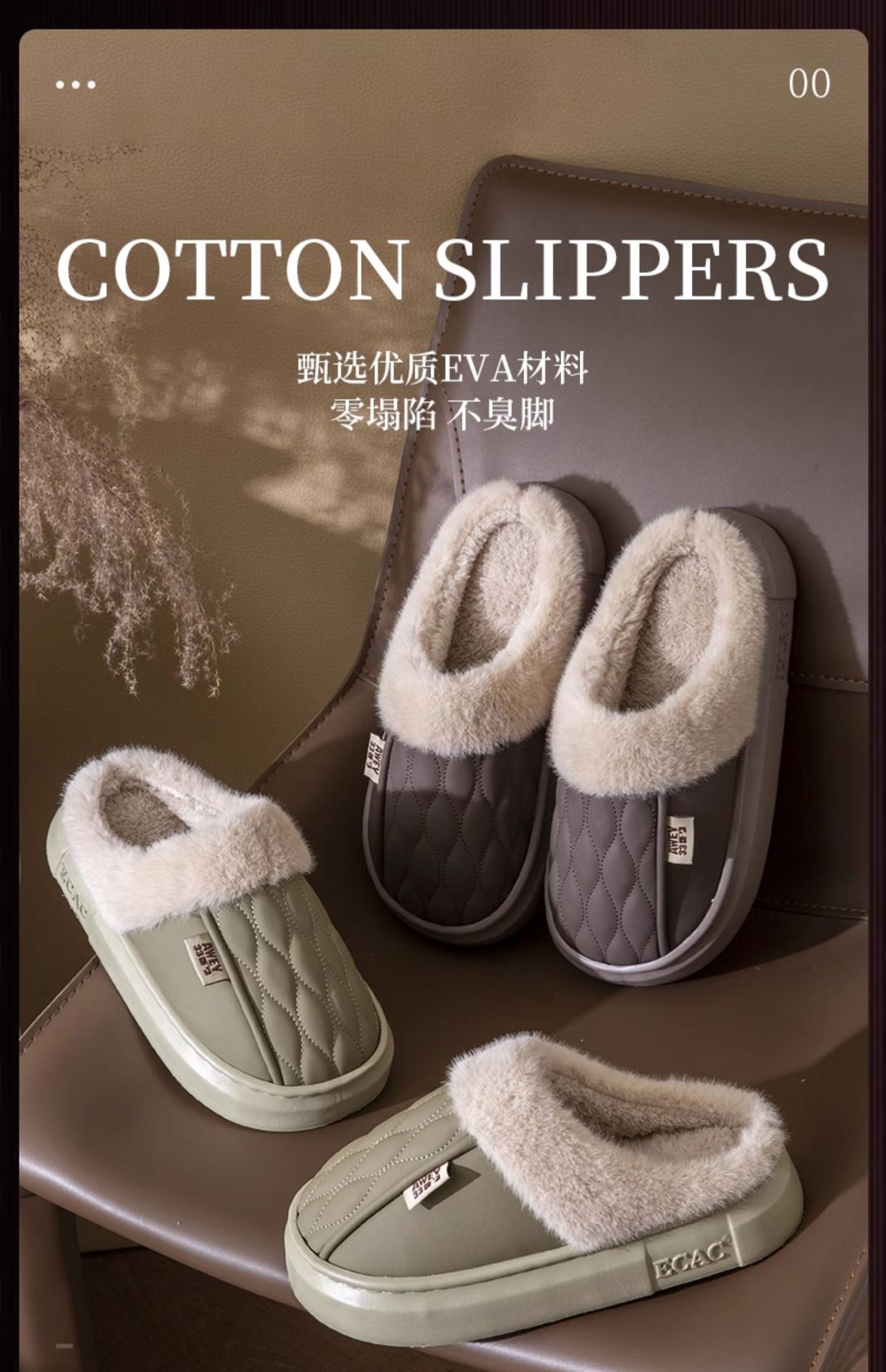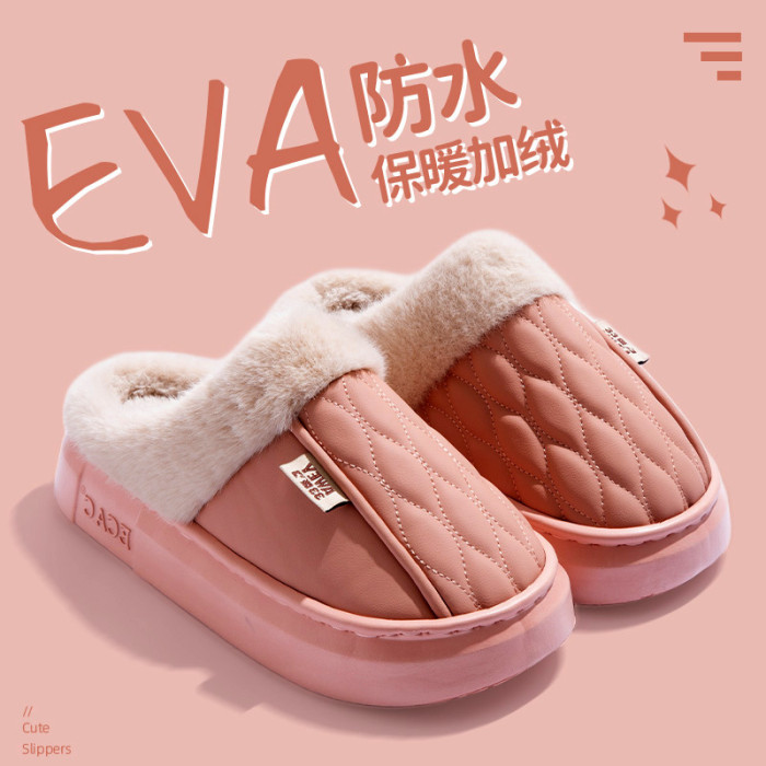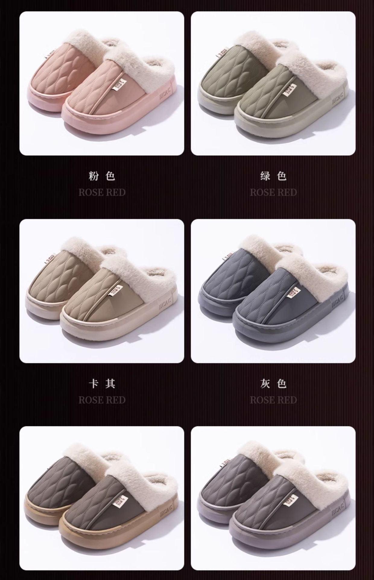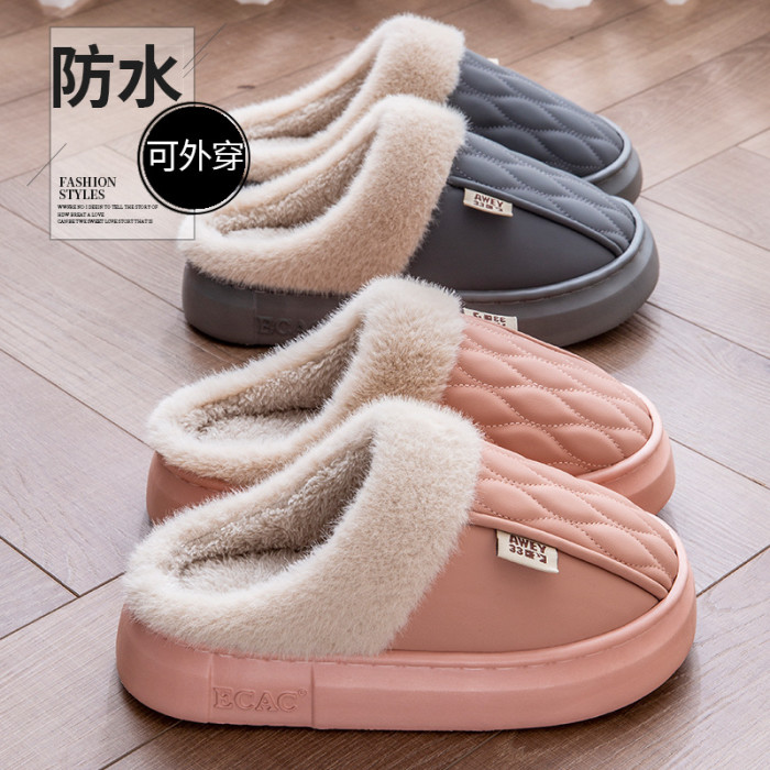 防水毛絨棉拖鞋女士秋冬保暖加絨厚底防滑家居室內情侶毛毛拖鞋男