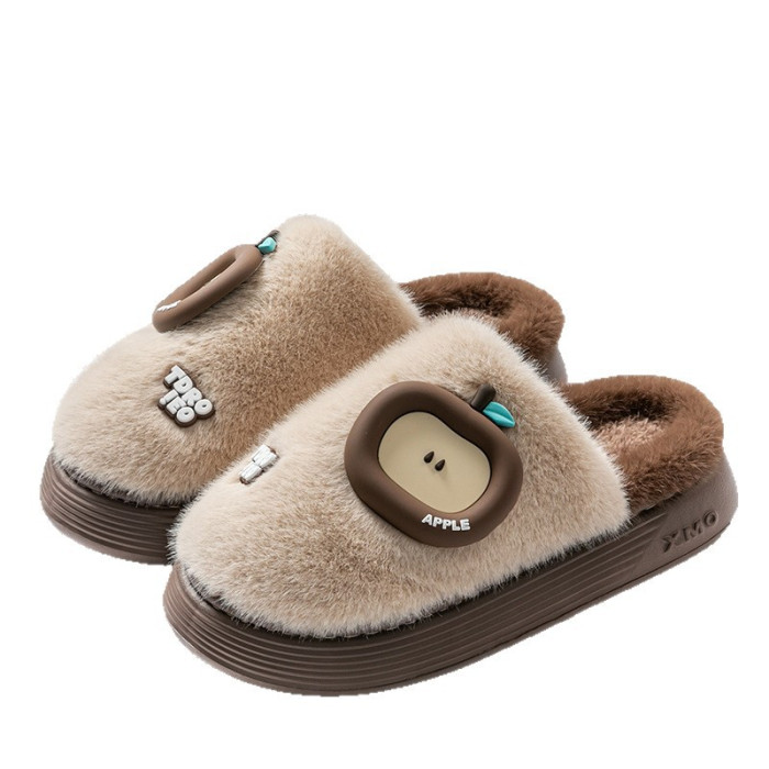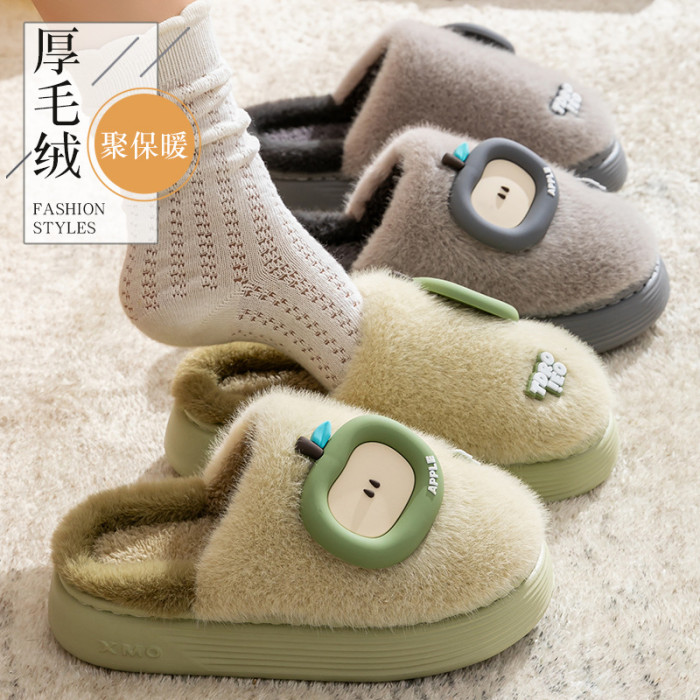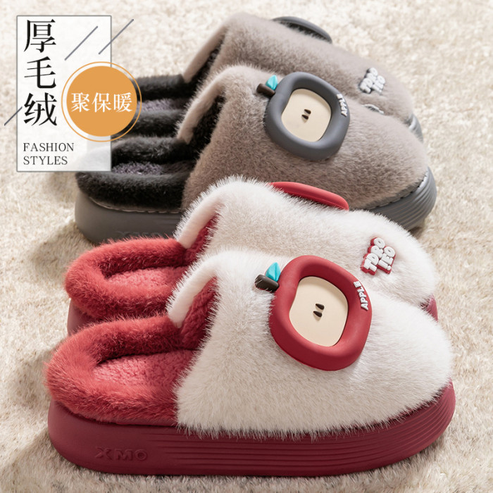 冬季可愛蘋果棉拖鞋女EVA厚底防滑居家鞋ins風地板室內家居棉鞋