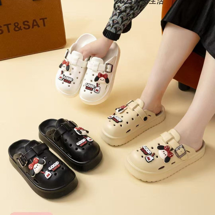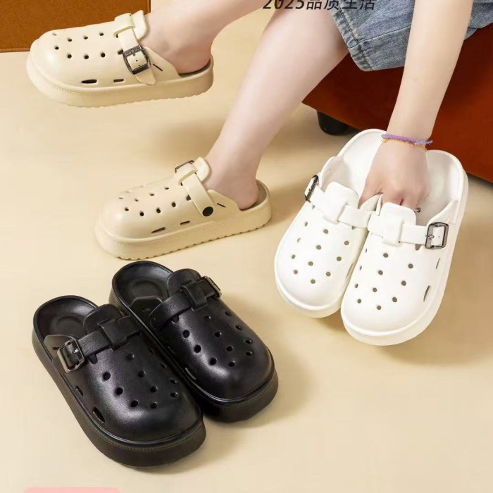 2025新款厚底包頭洞洞鞋女夏季外穿INS沙灘勃肯半拖防滑