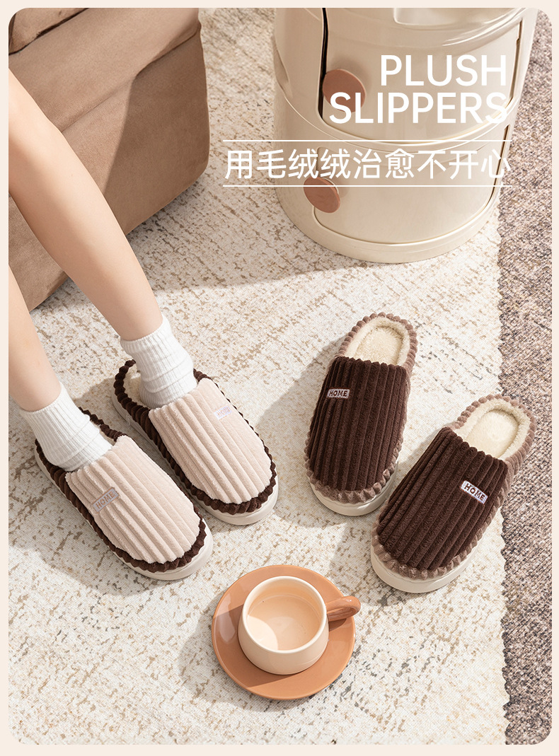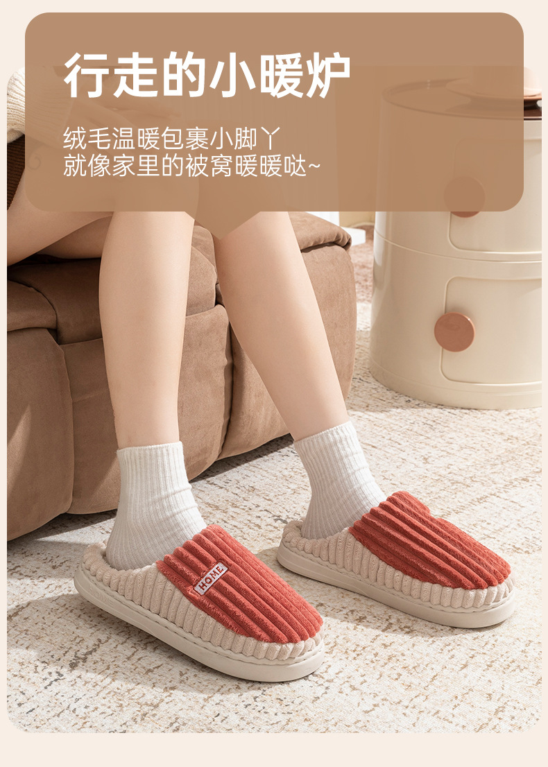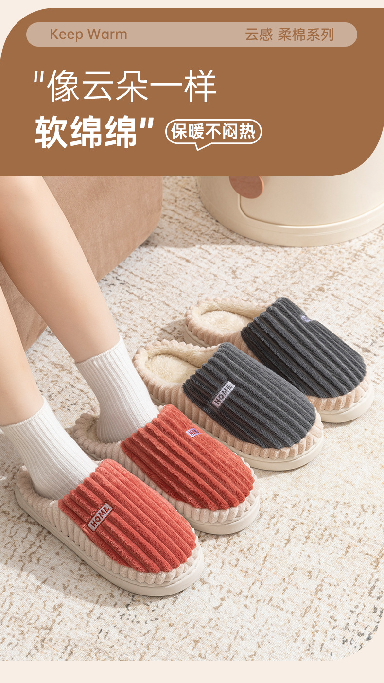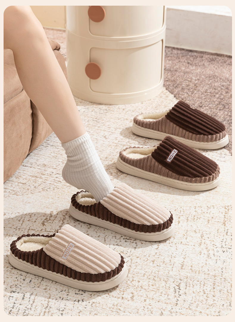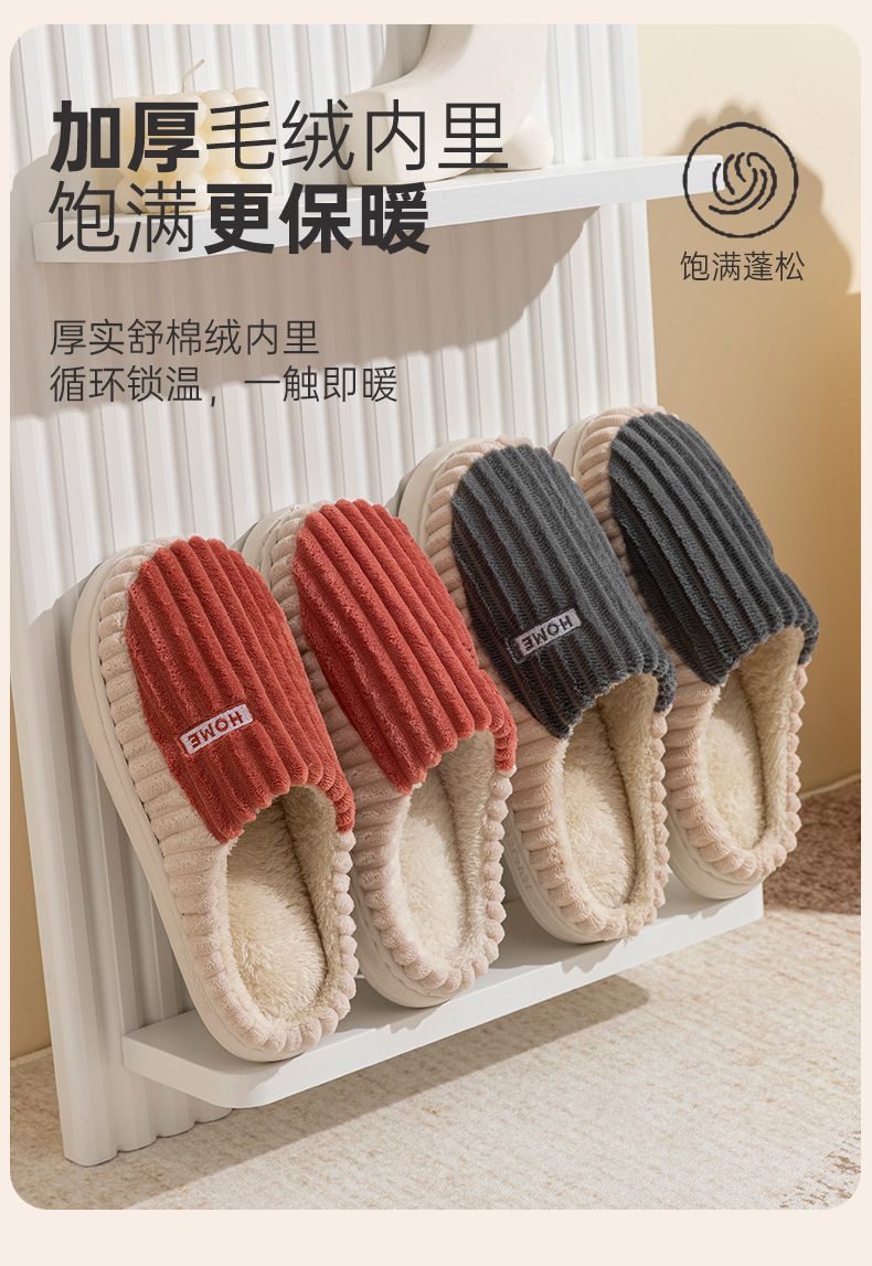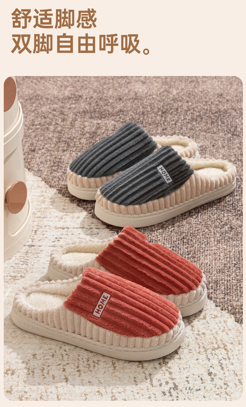 2025條紋新款棉拖鞋男女時尚情侶厚底加絨保暖秋冬季地板棉拖