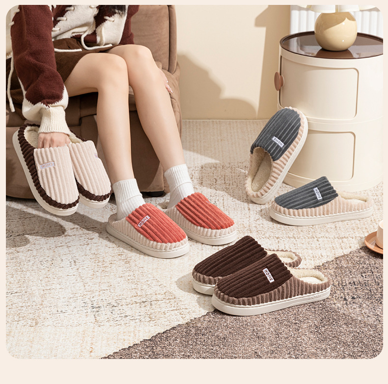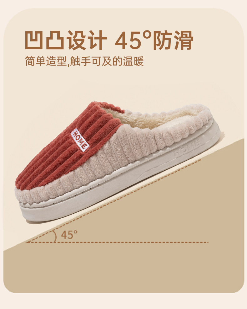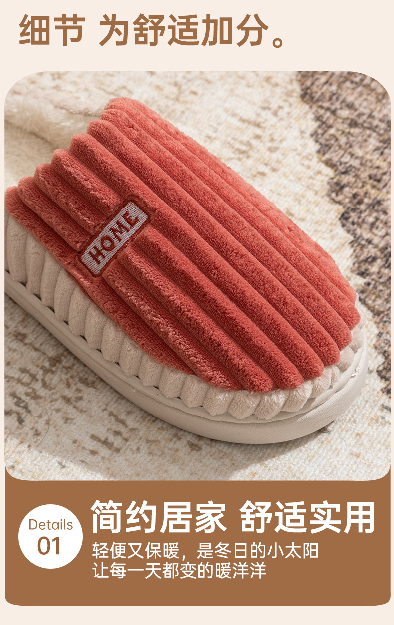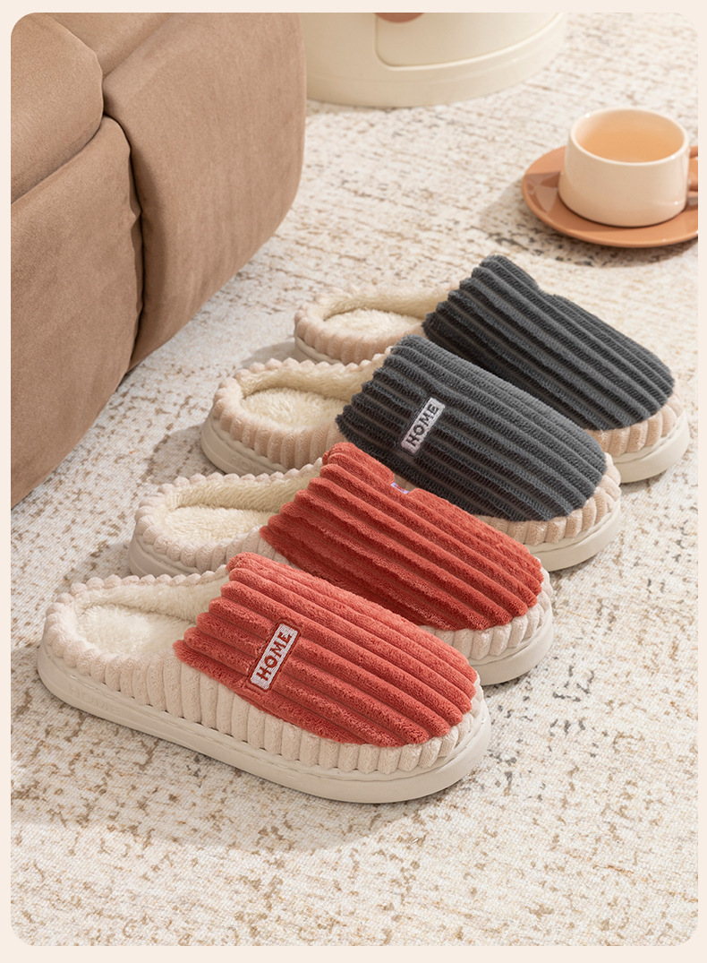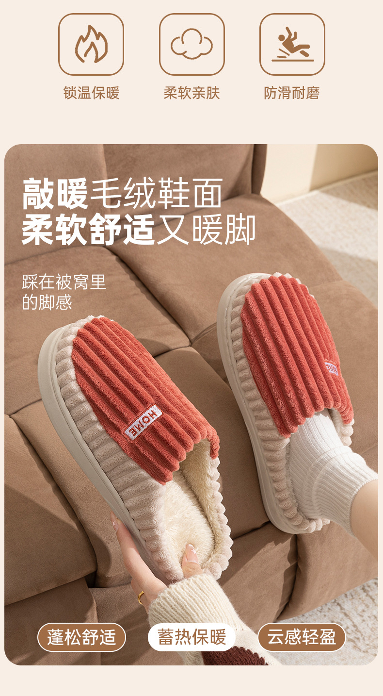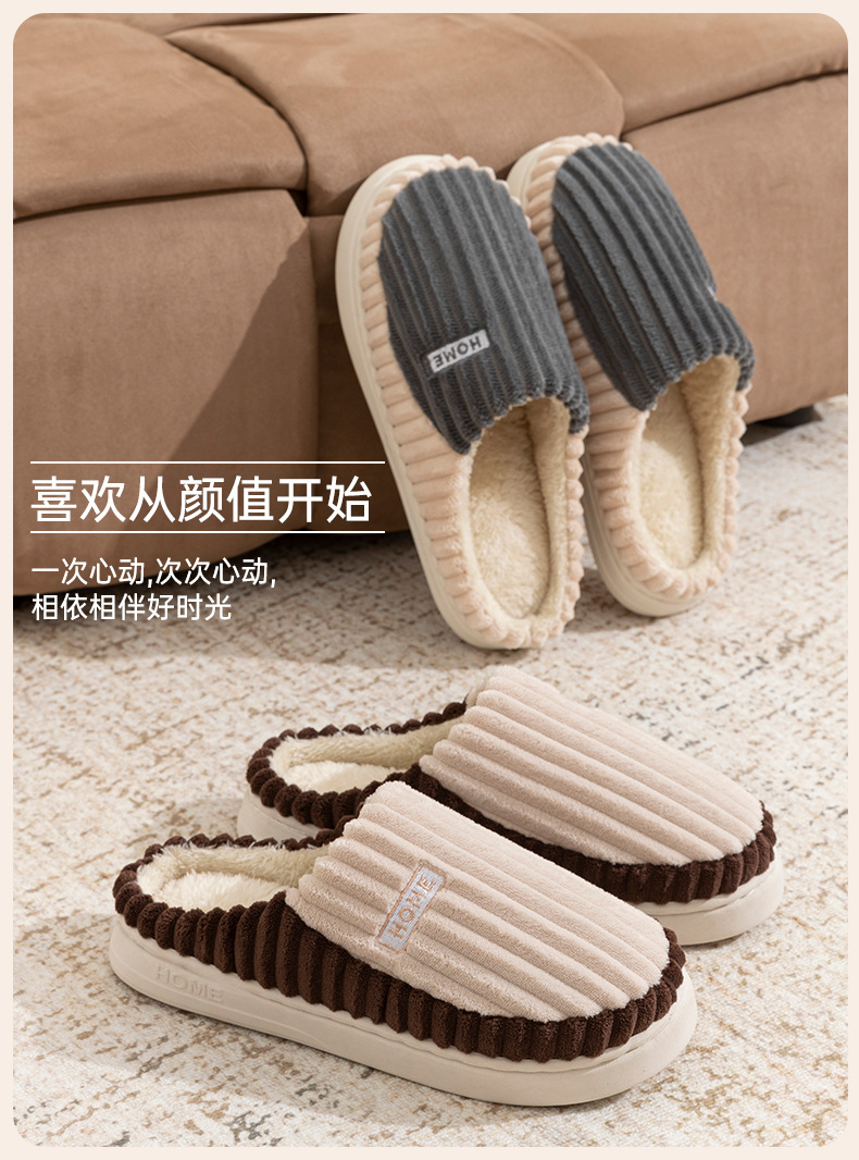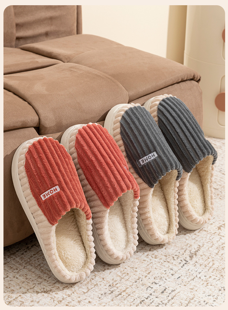 2025條紋新款棉拖鞋男女時尚情侶厚底加絨保暖秋冬季地板棉拖