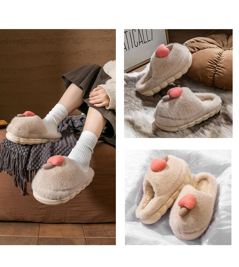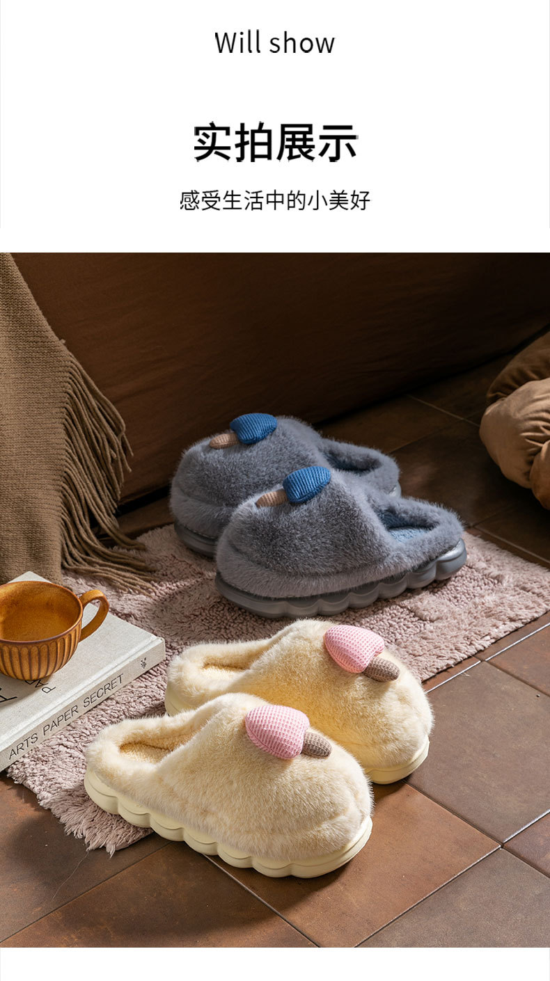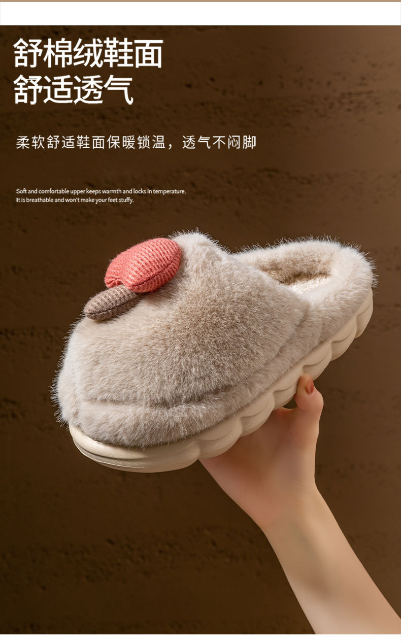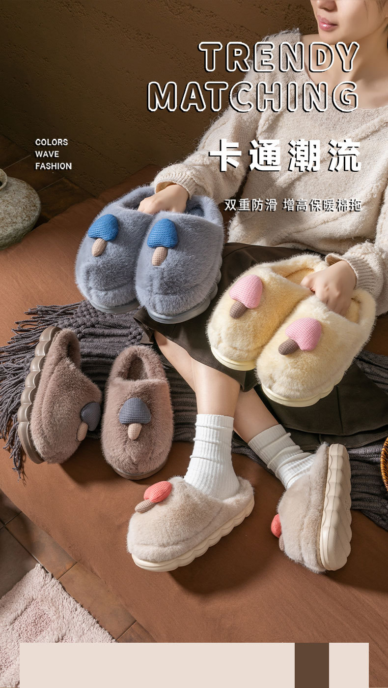 可愛蘑菇室內家用棉拖鞋女秋冬季毛絨保暖舒適厚底外穿包頭月子鞋