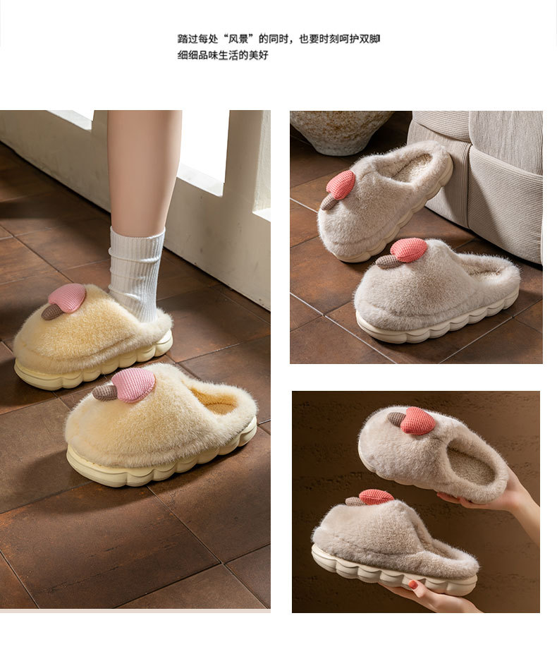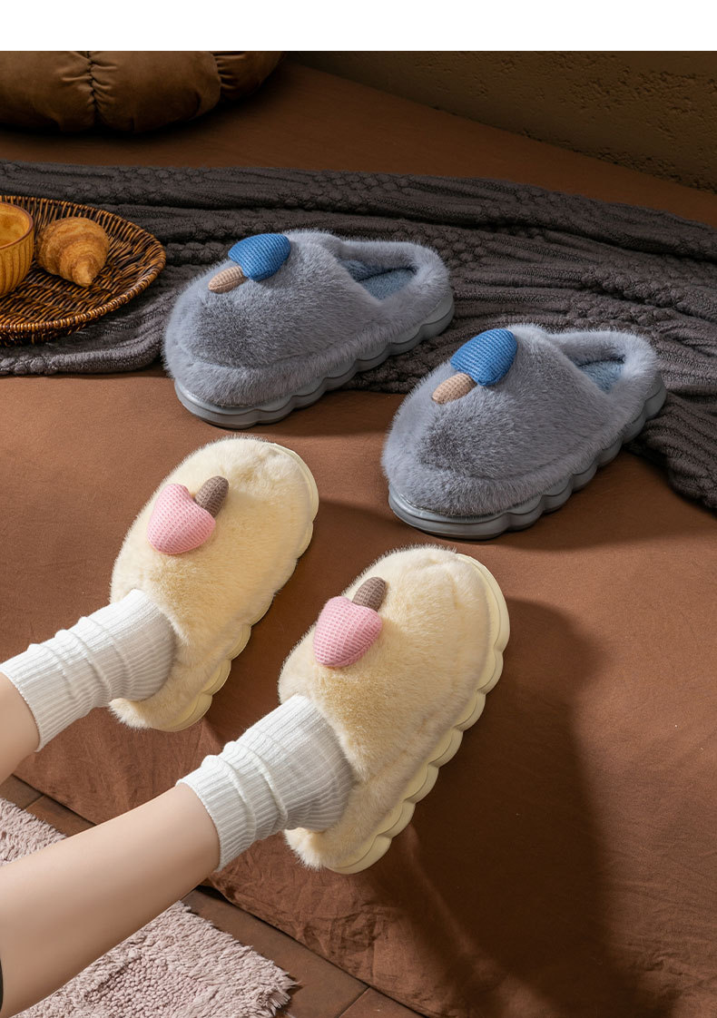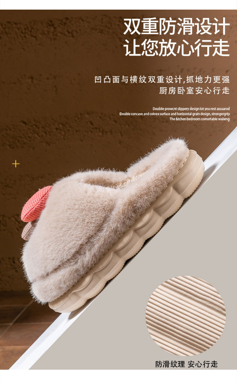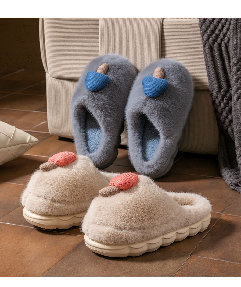 可愛蘑菇室內家用棉拖鞋女秋冬季毛絨保暖舒適厚底外穿包頭月子鞋