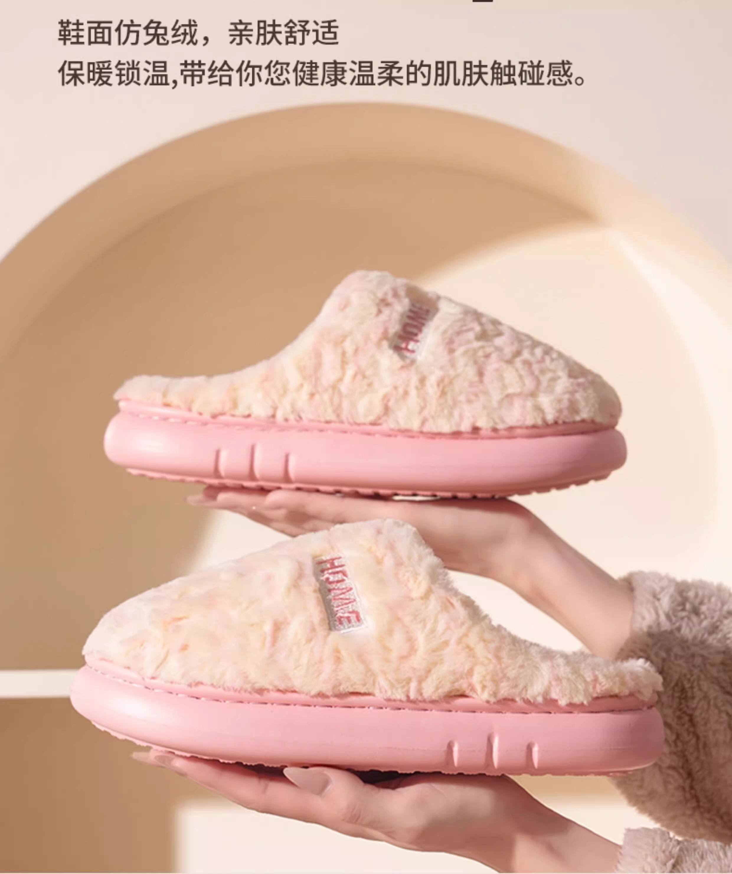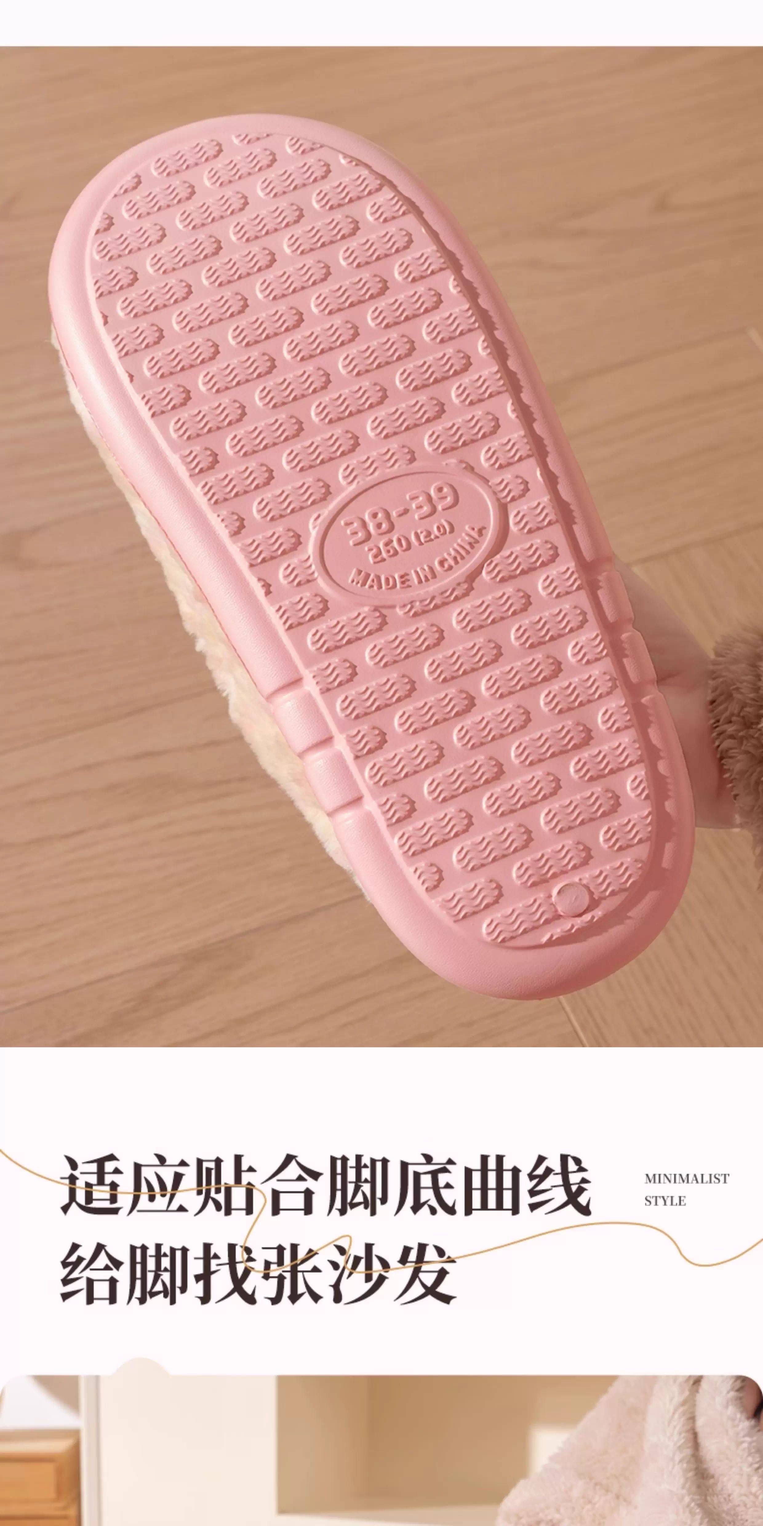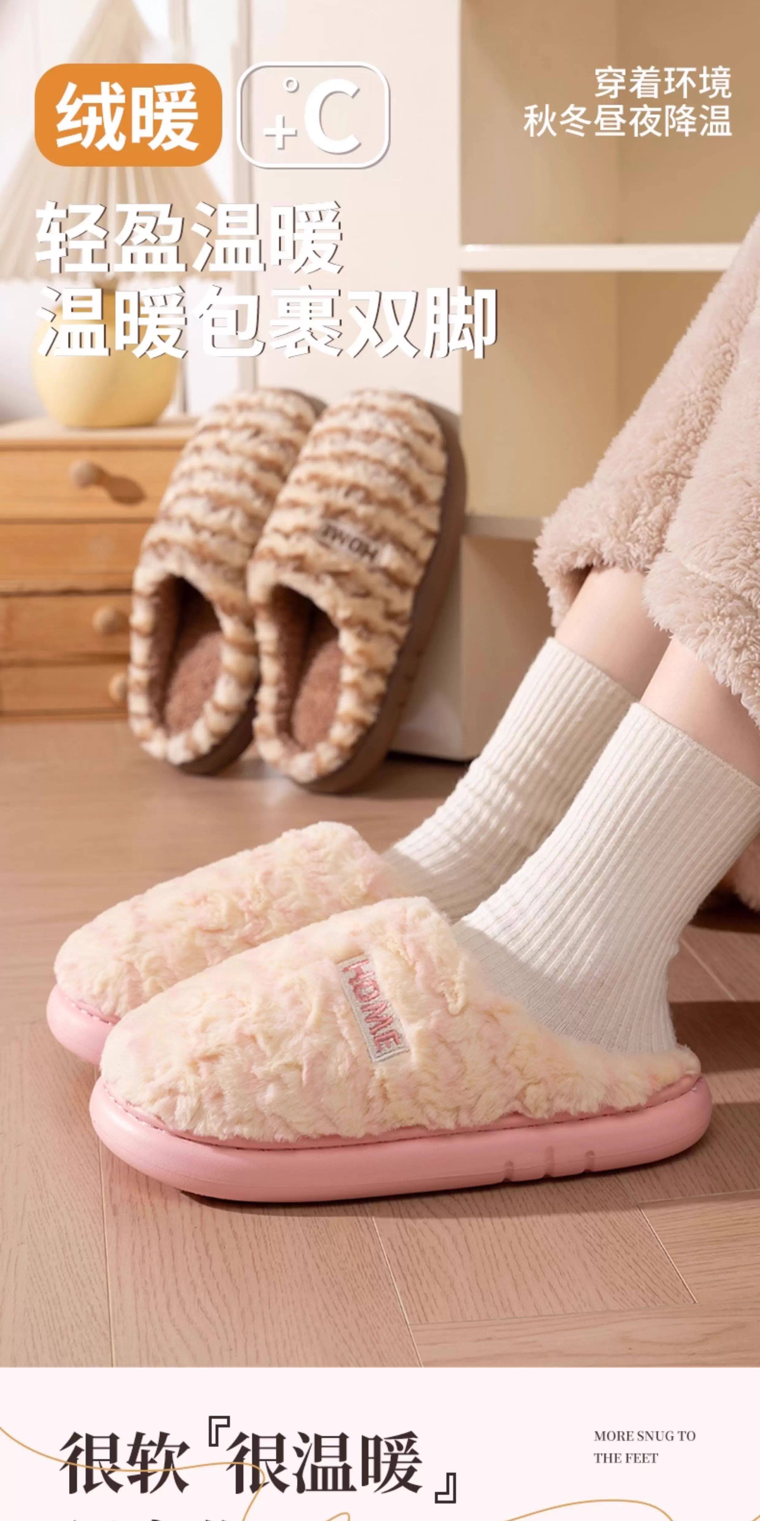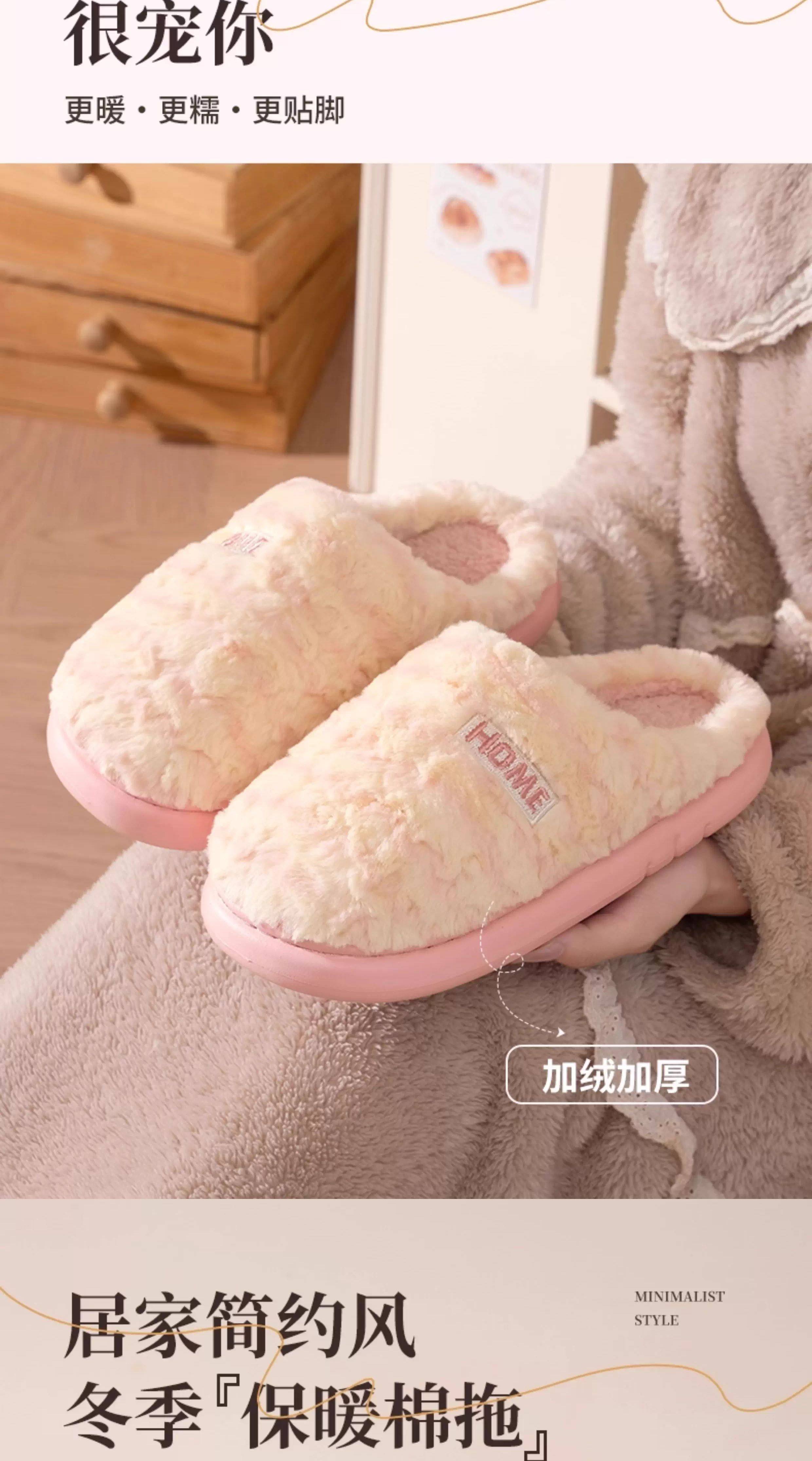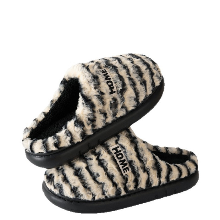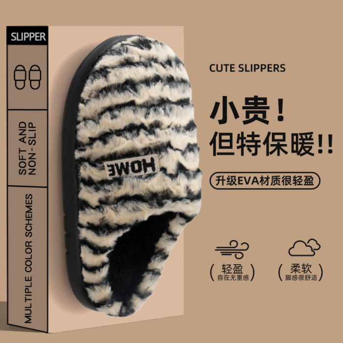 條紋毛絨棉拖鞋男士5新秋冬季加厚保暖居家室內軟底月子鞋女