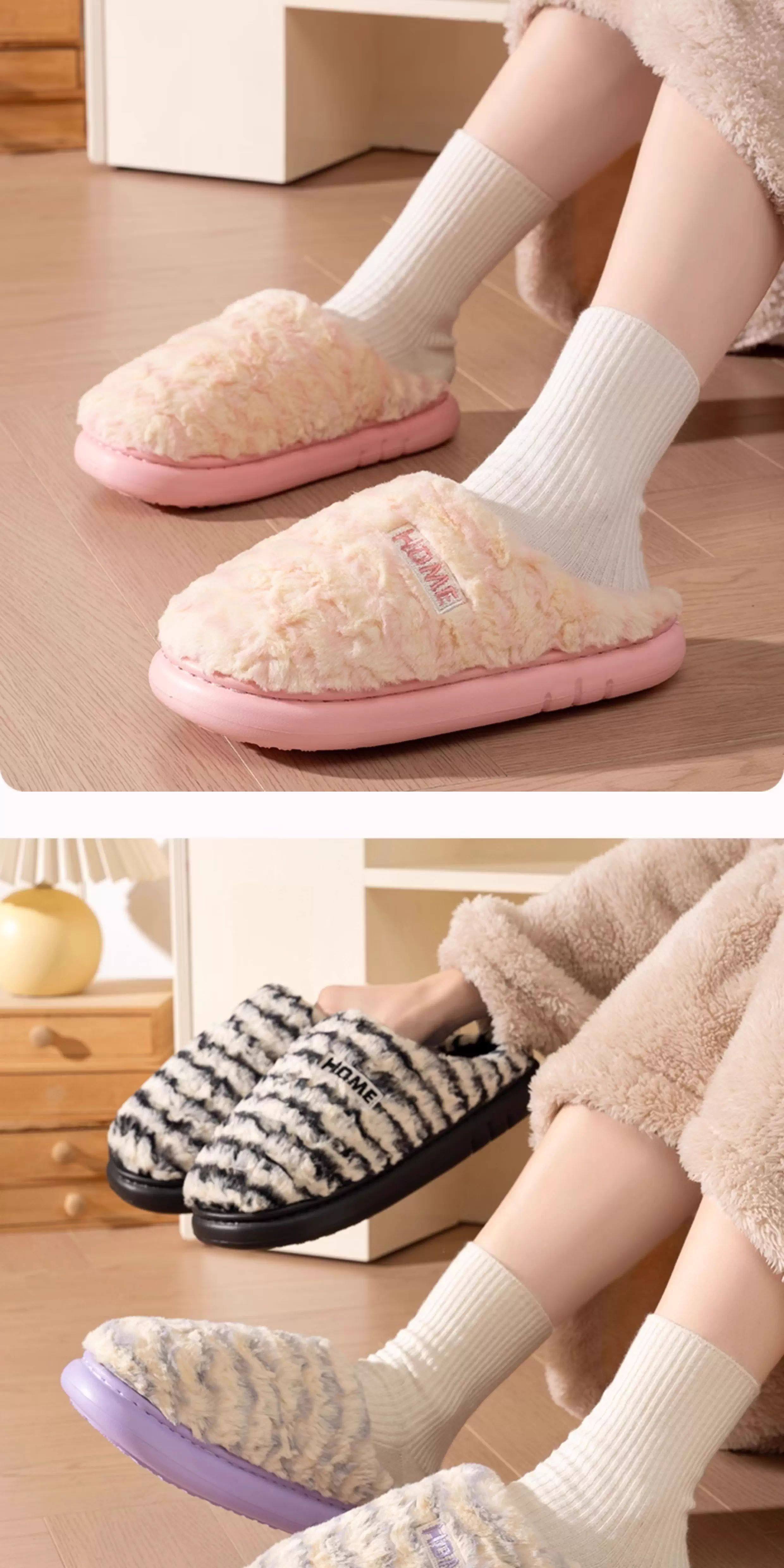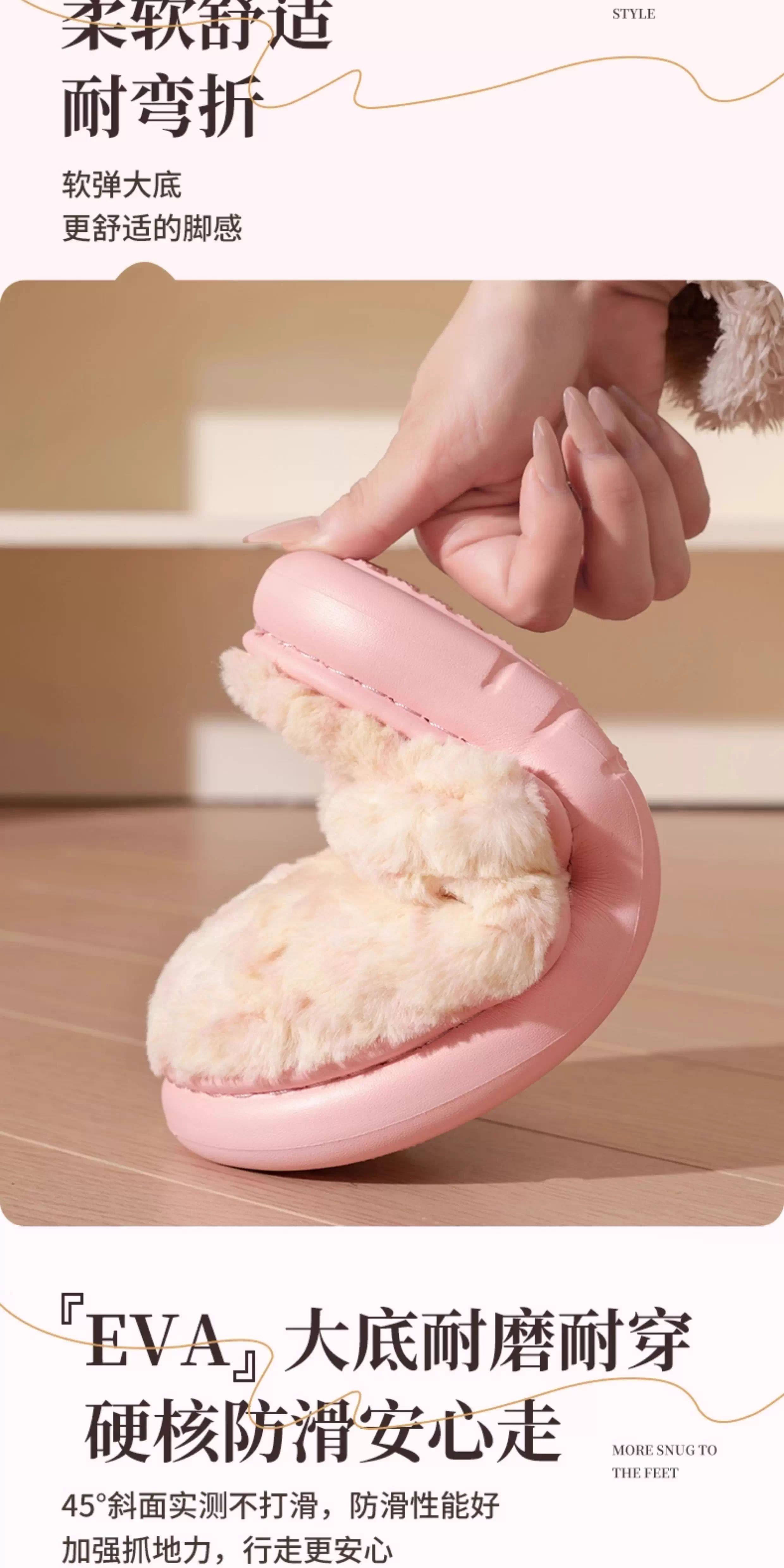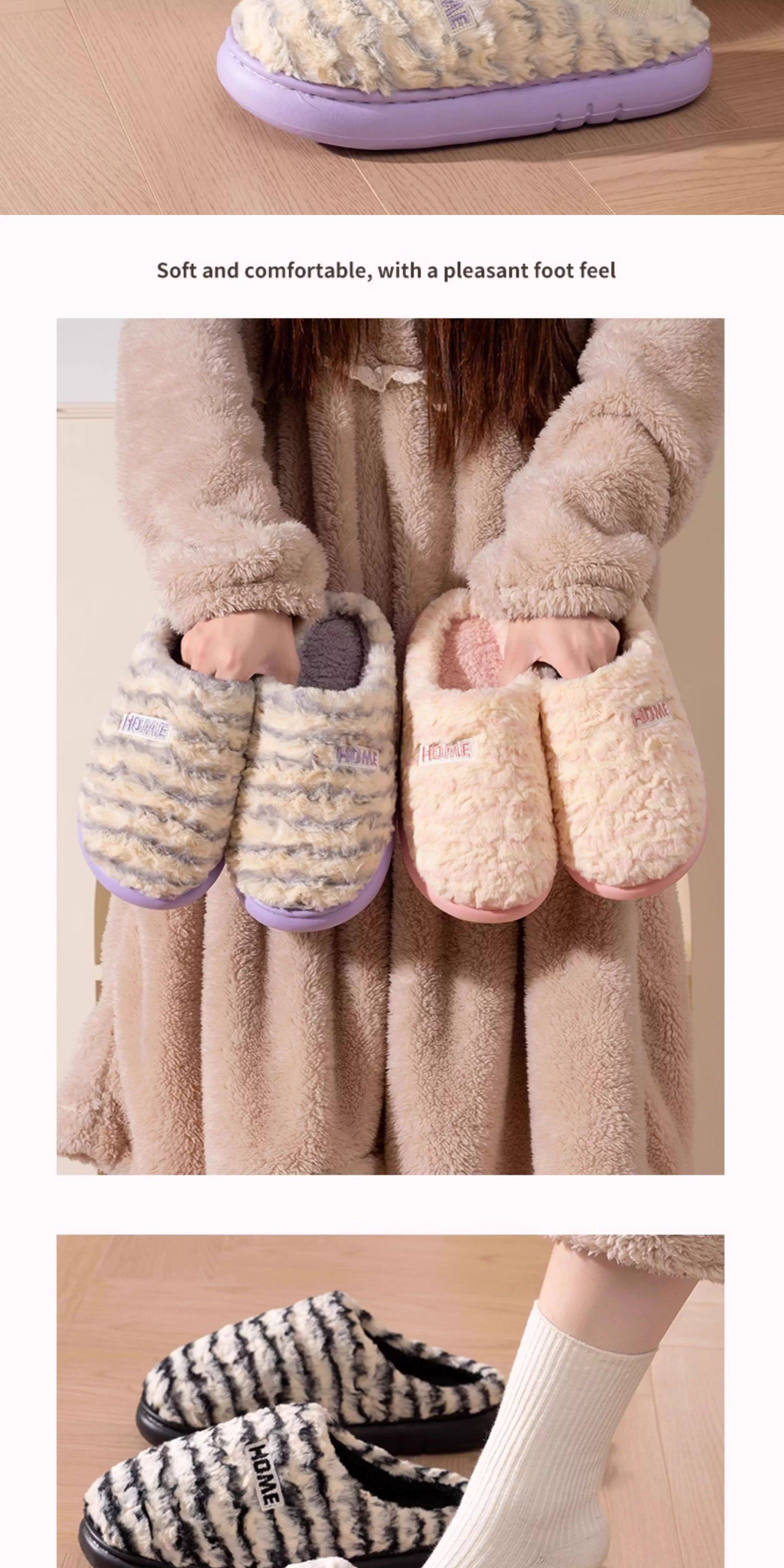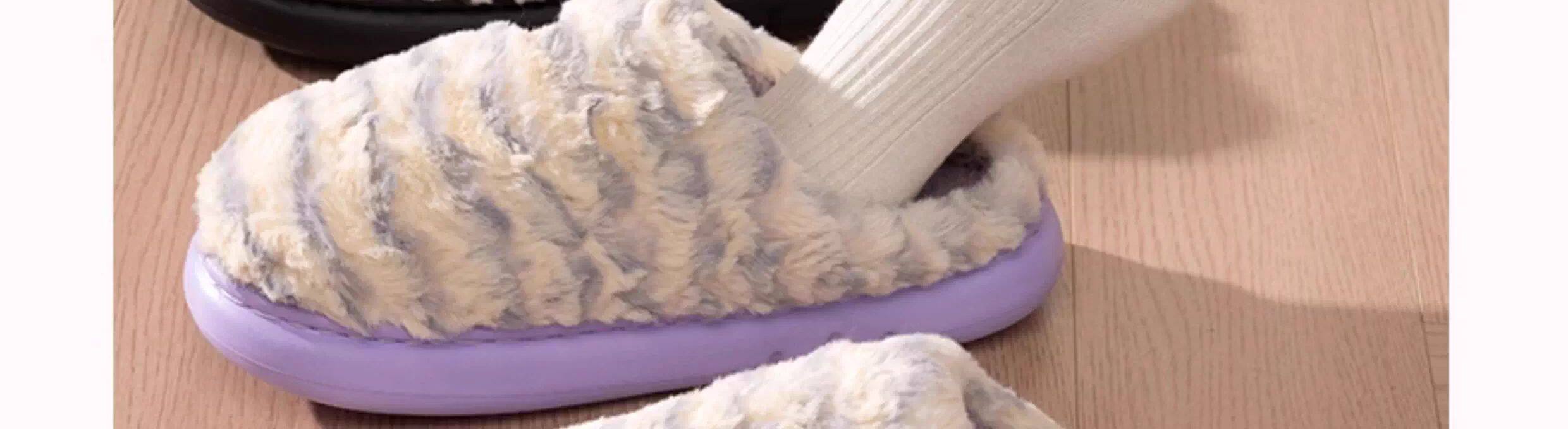條紋毛絨棉拖鞋男士5新秋冬季加厚保暖居家室內軟底月子鞋女
