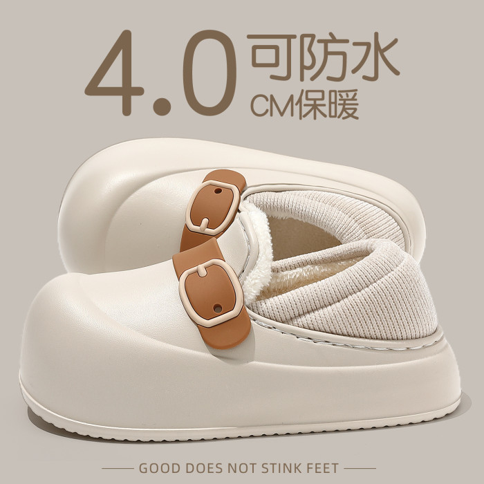 防水棉拖鞋女冬季外穿防風保暖毛絨家居室內防滑女士包跟棉鞋