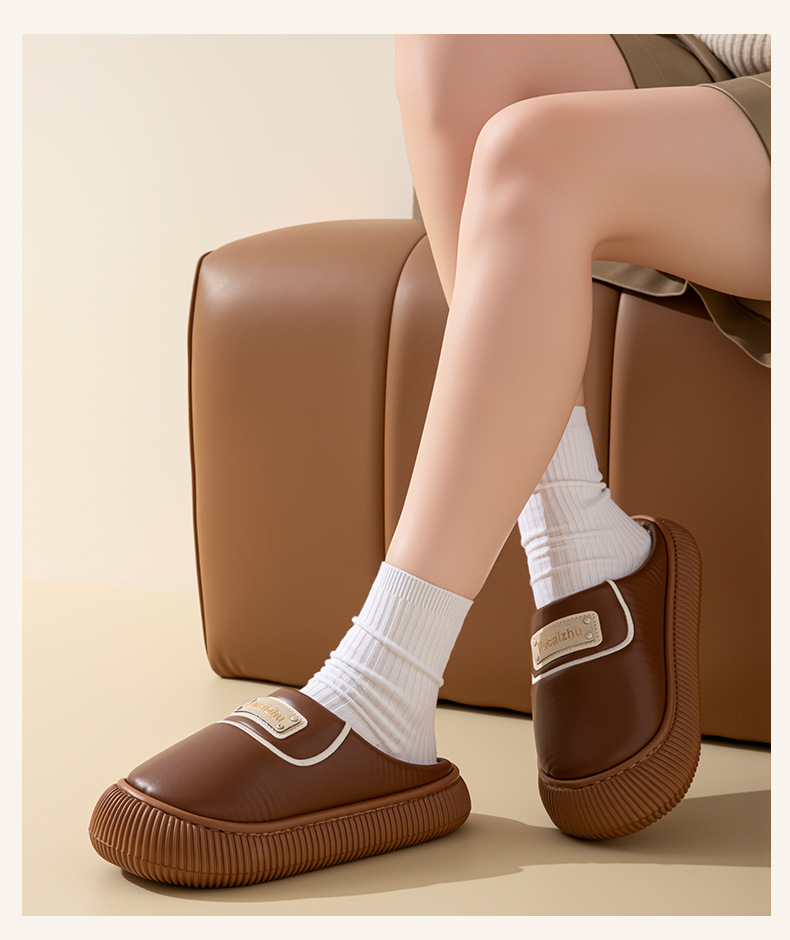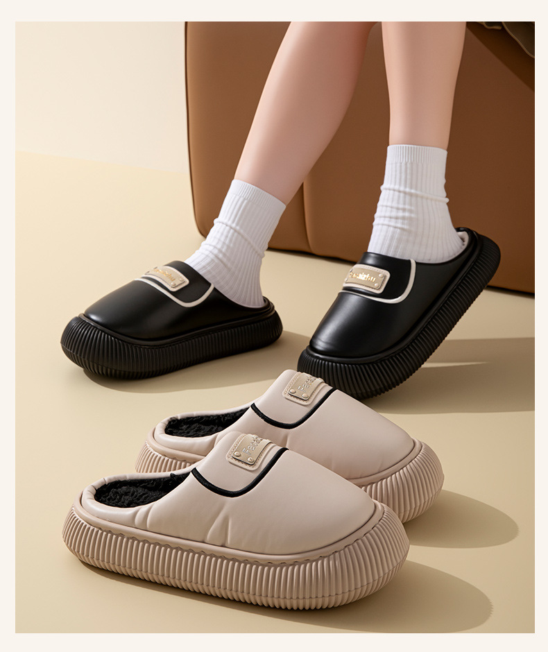 2025新款棉拖鞋女士時尚防滑厚底加絨保暖秋冬季地板防水棉拖
