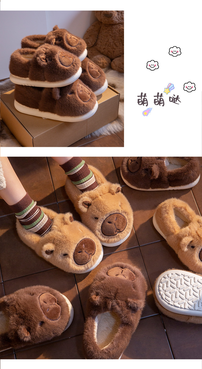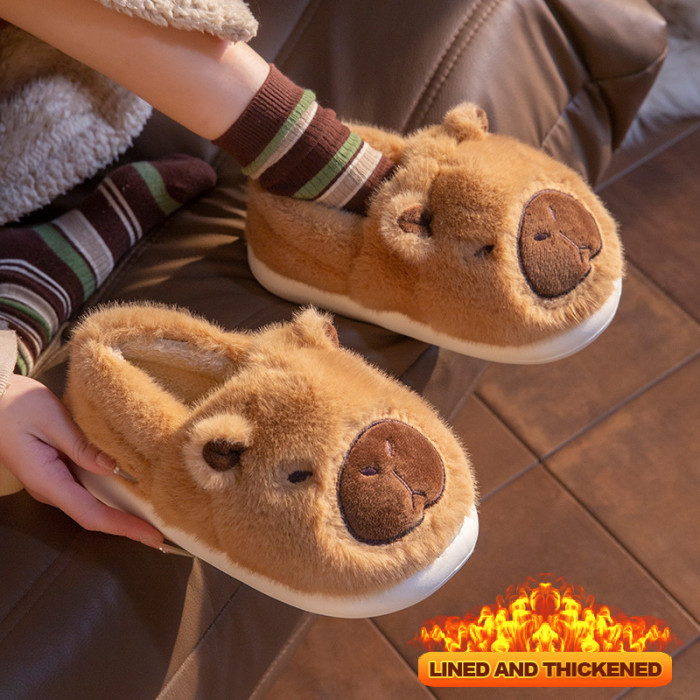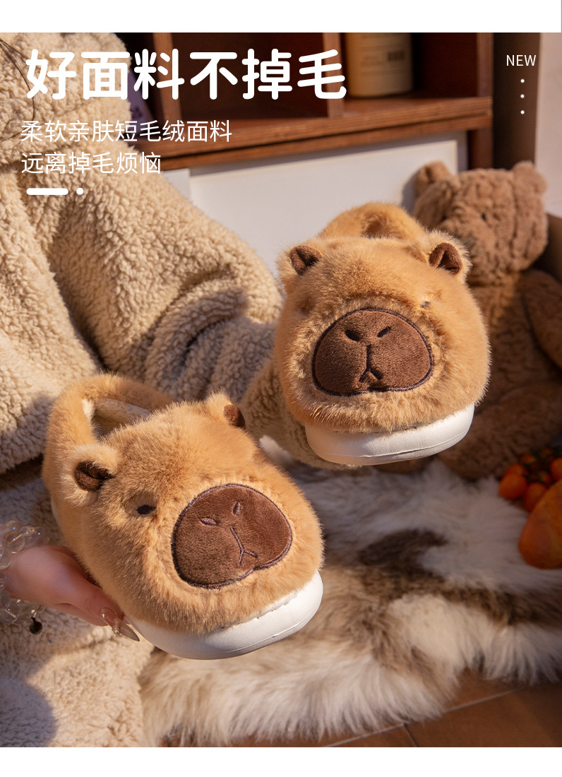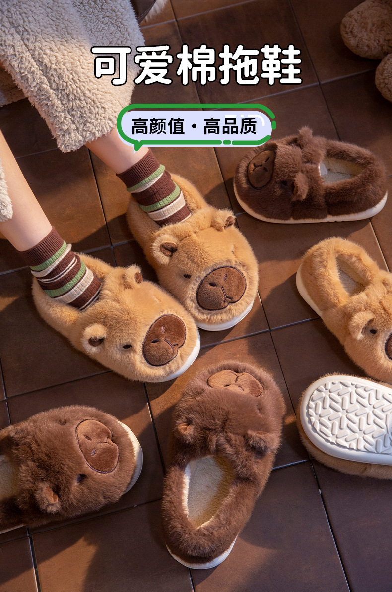 卡皮巴拉親子棉拖鞋女秋冬季包跟2025新款室內防滑保暖厚底棉鞋男