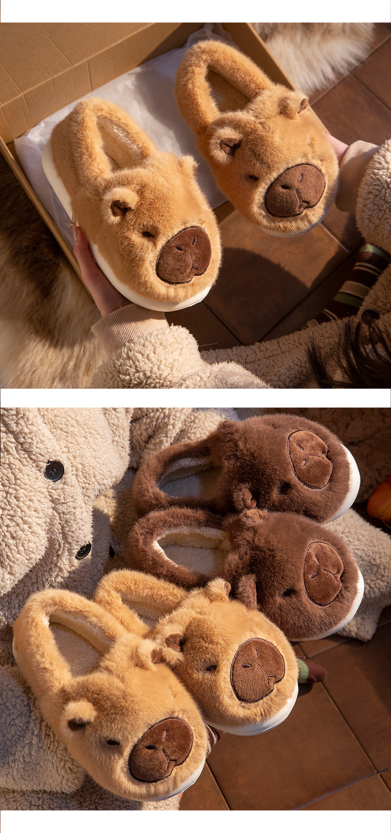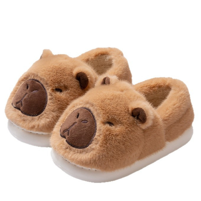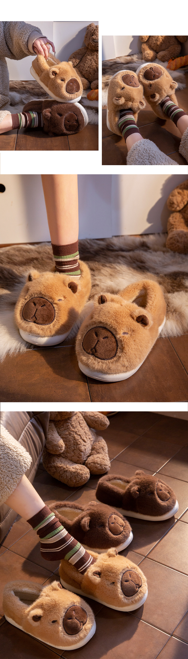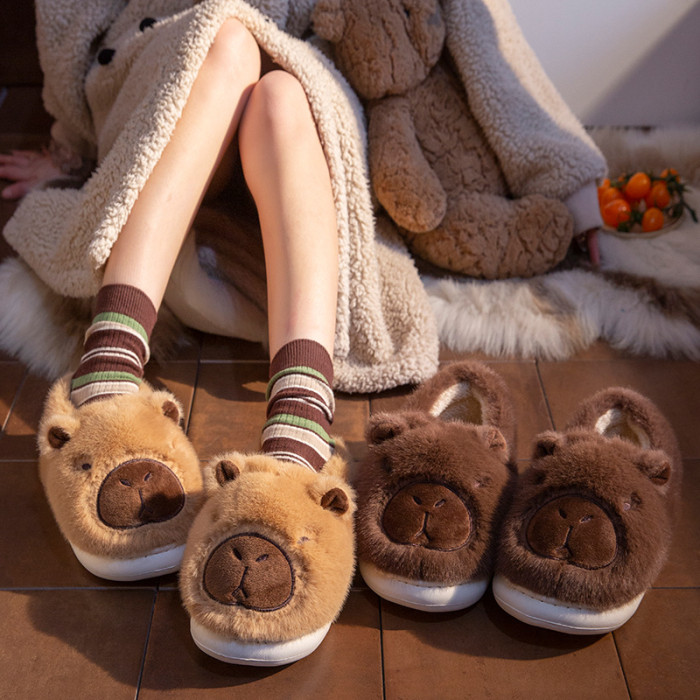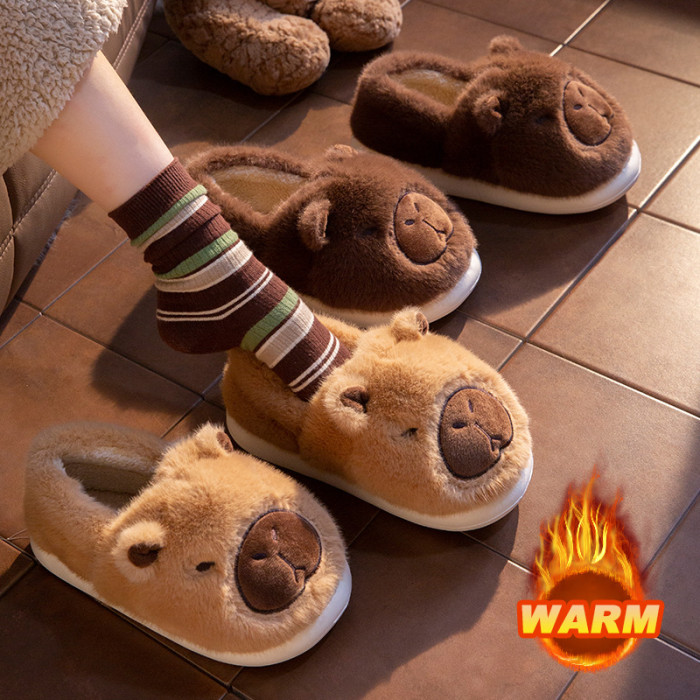 卡皮巴拉親子棉拖鞋女秋冬季包跟2025新款室內防滑保暖厚底棉鞋男