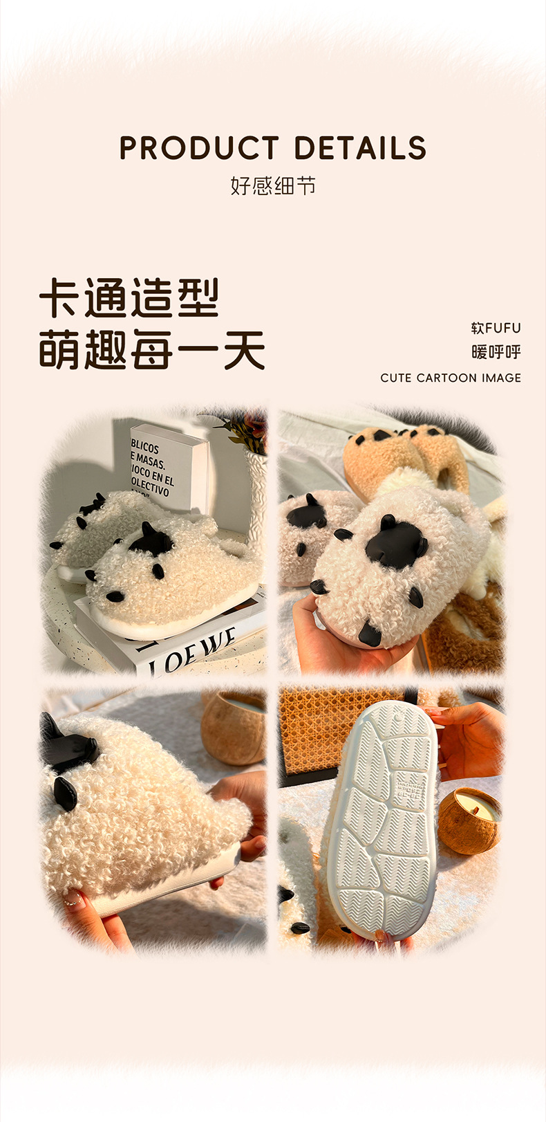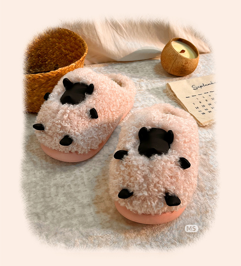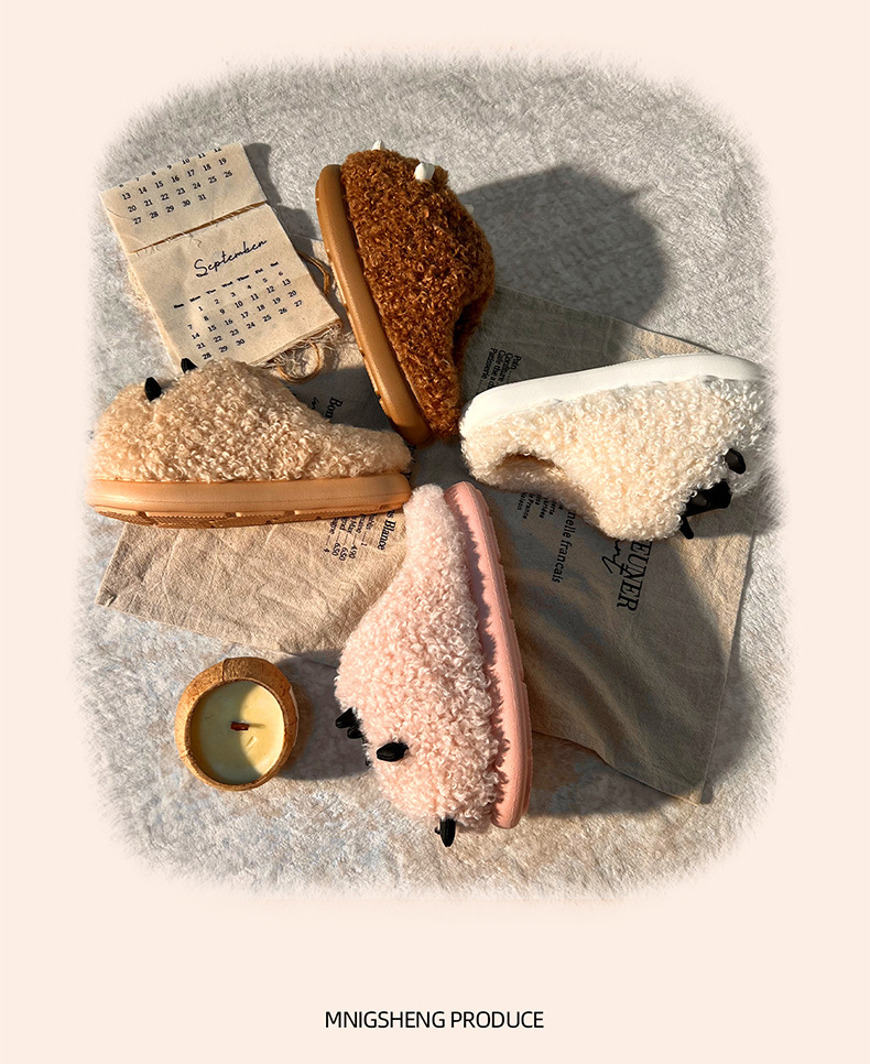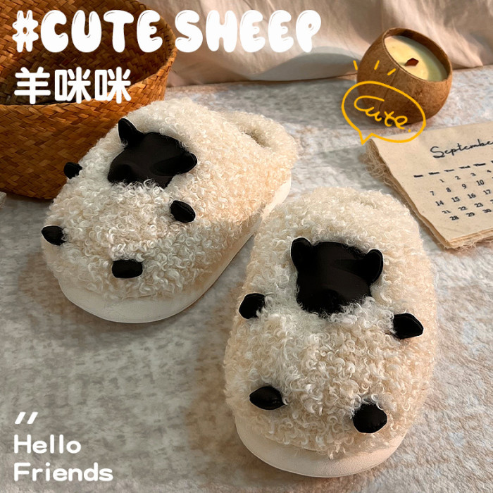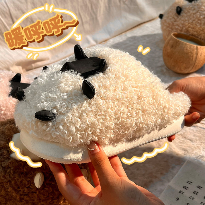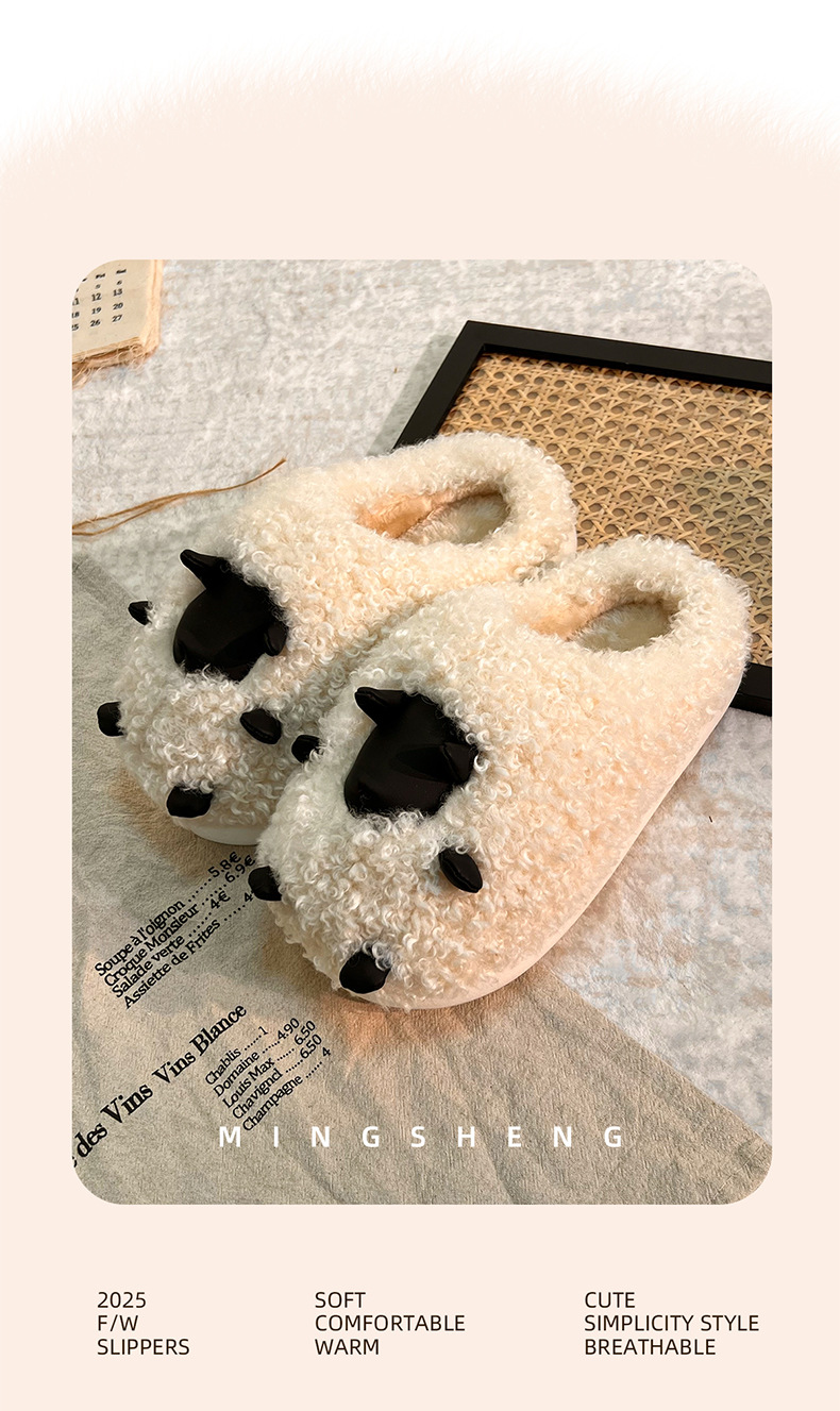 可愛棉拖鞋女款秋冬季2025新款室內家居卡通小羊保暖加絨毛毛棉拖