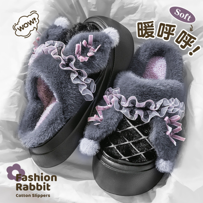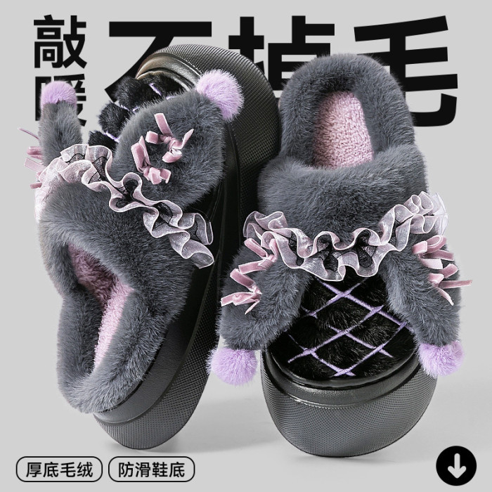 可愛棉拖鞋女款秋冬季2025新款室內家居毛毛絨保暖防滑踩屎感棉拖
