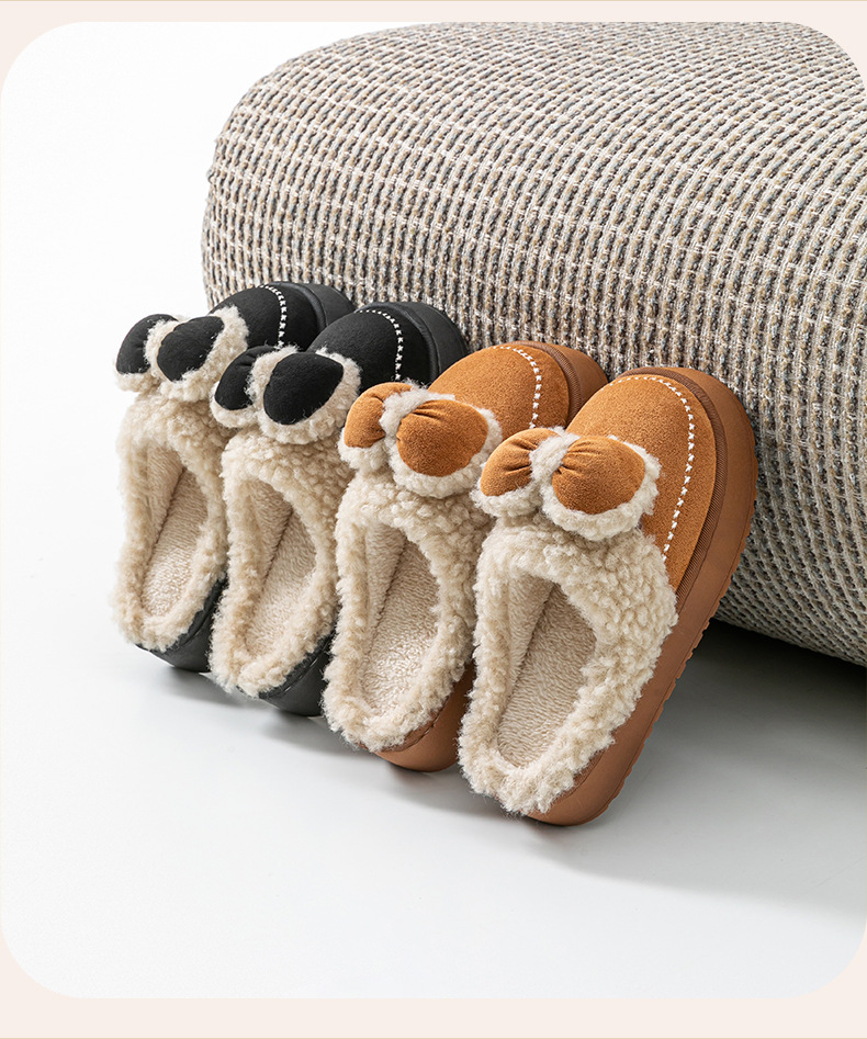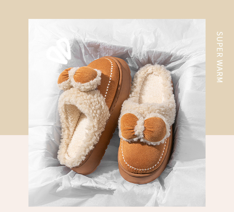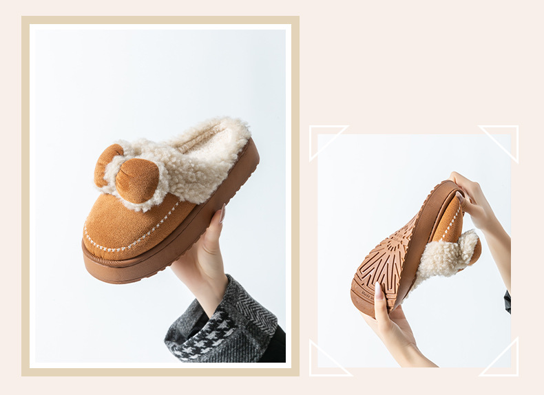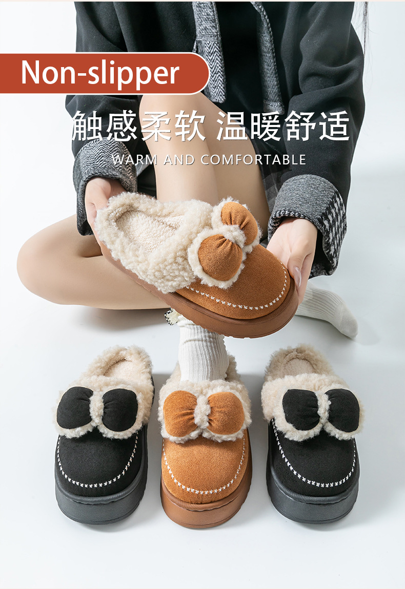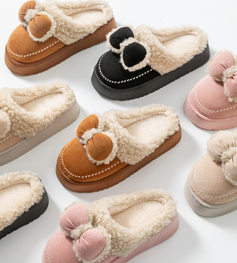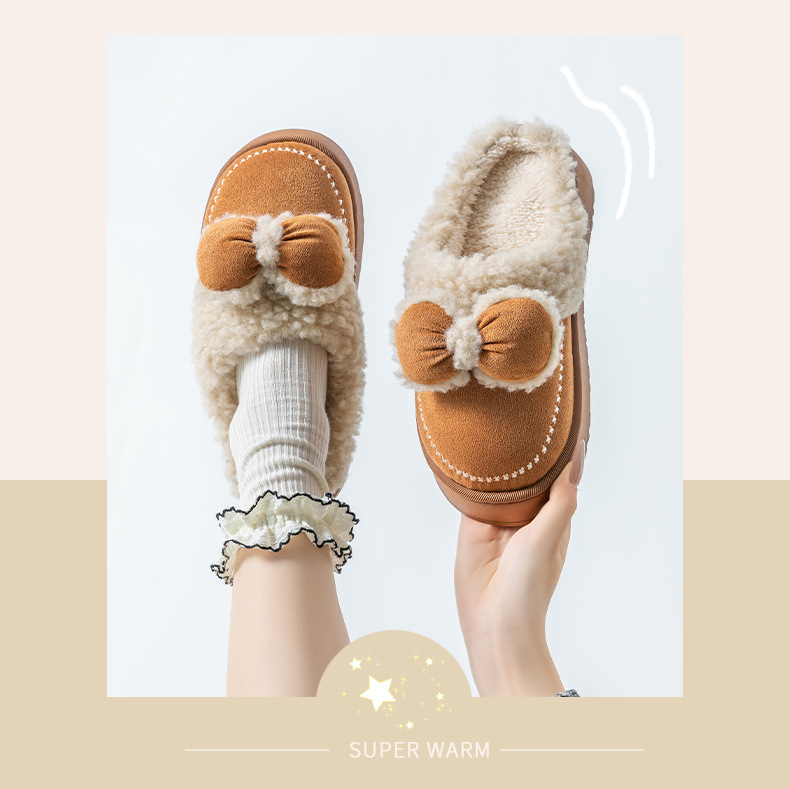 2025蝴蝶結新款棉拖鞋女時尚情侶厚底加絨保暖秋冬季地板棉拖跨